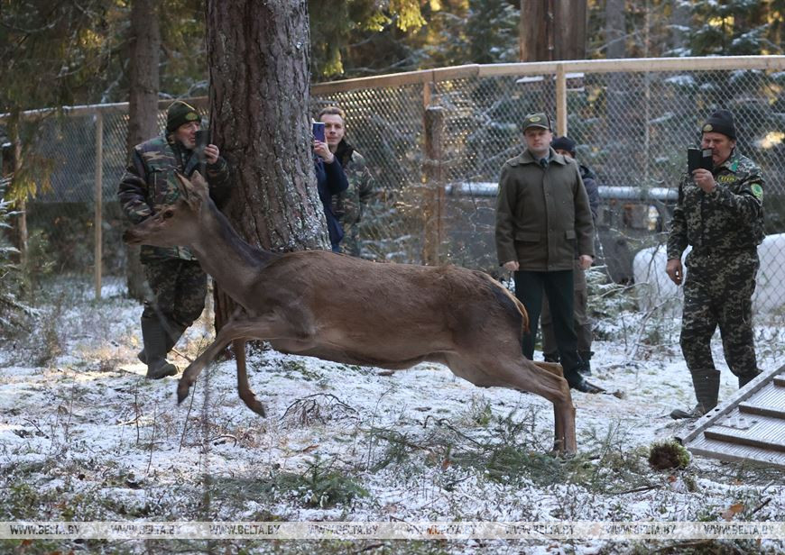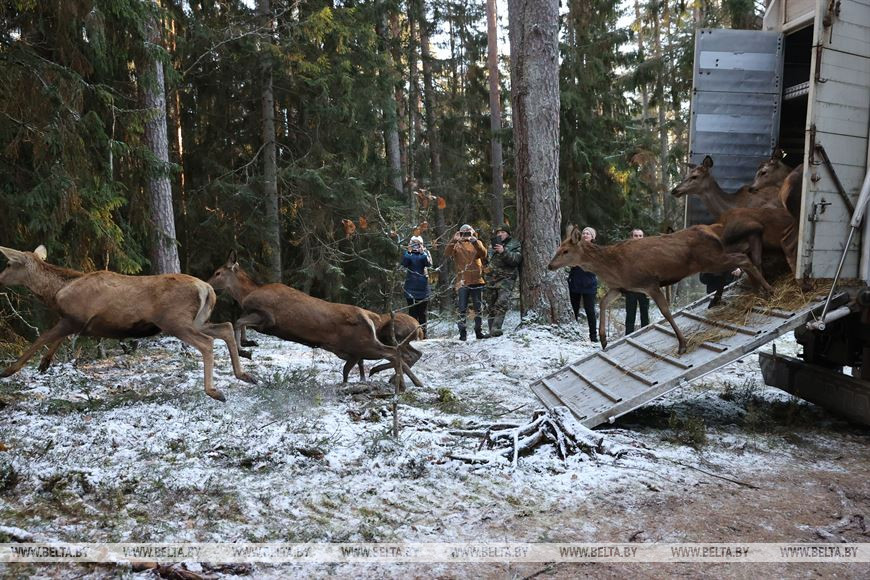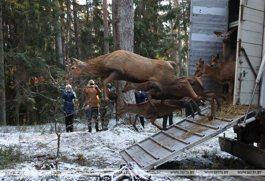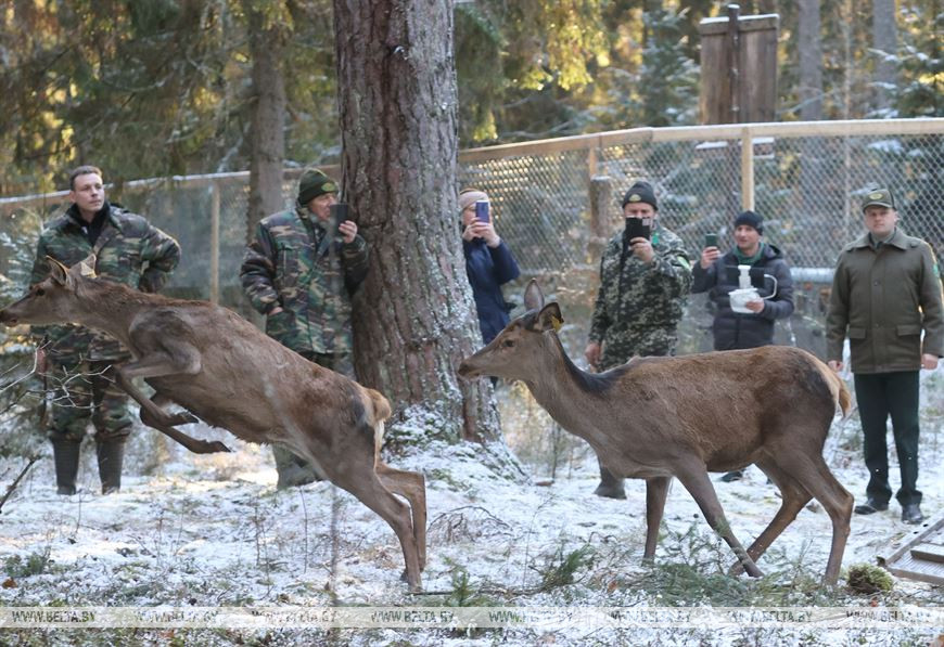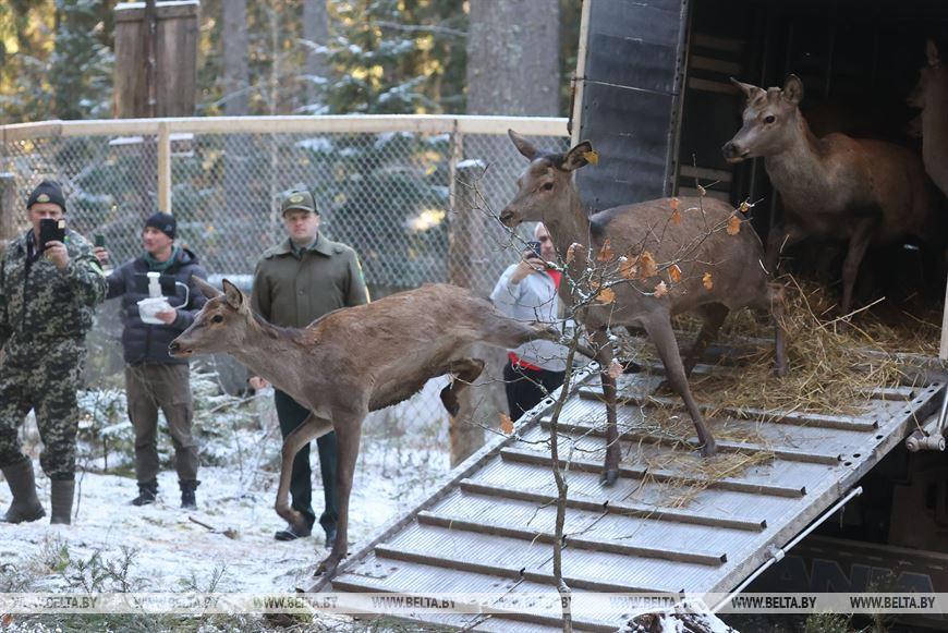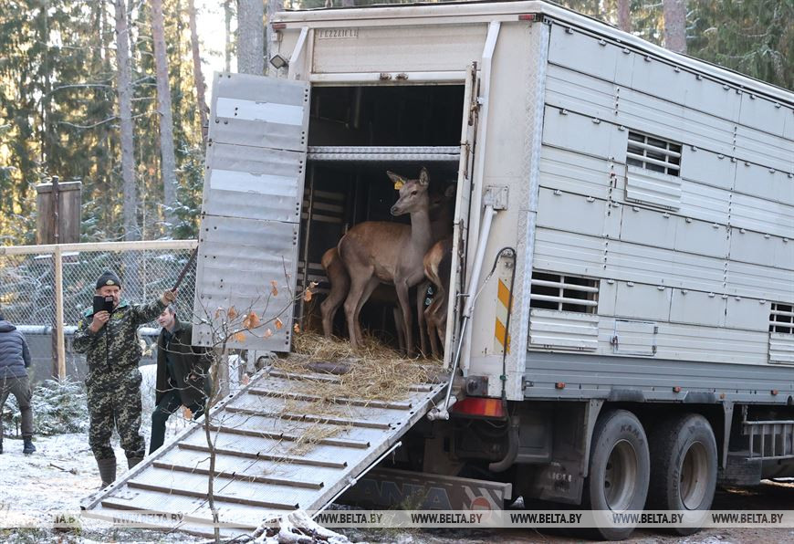 23 ноября, Витебск /Корр. БЕЛТА/. 23 ноября в Витебском лесхозе появились 35 благородных оленей, которых привезли на постоянное место жительства. Обитателей лесов Витебского района закупили в Миорском регионе в охотхозяйстве ООО "Обстерно", которое специализируется на выращивании благородных оленей на продажу охотхозяйствам области и страны. Так как подобных оленьих ферм в Беларуси немного, отсюда же еще одно стадо из 40 голов до конца года переедет в Миорскую РОС Белорусского общества охотников и рыболовов.-0-