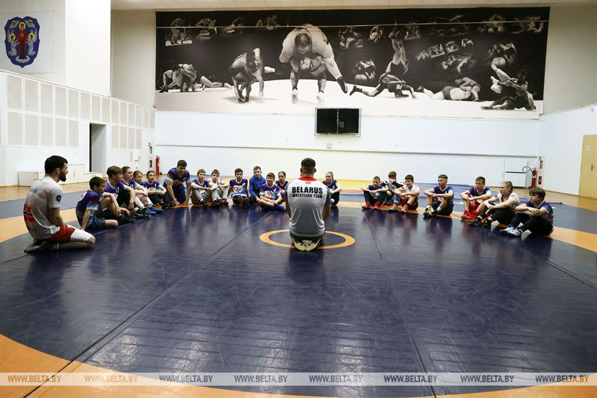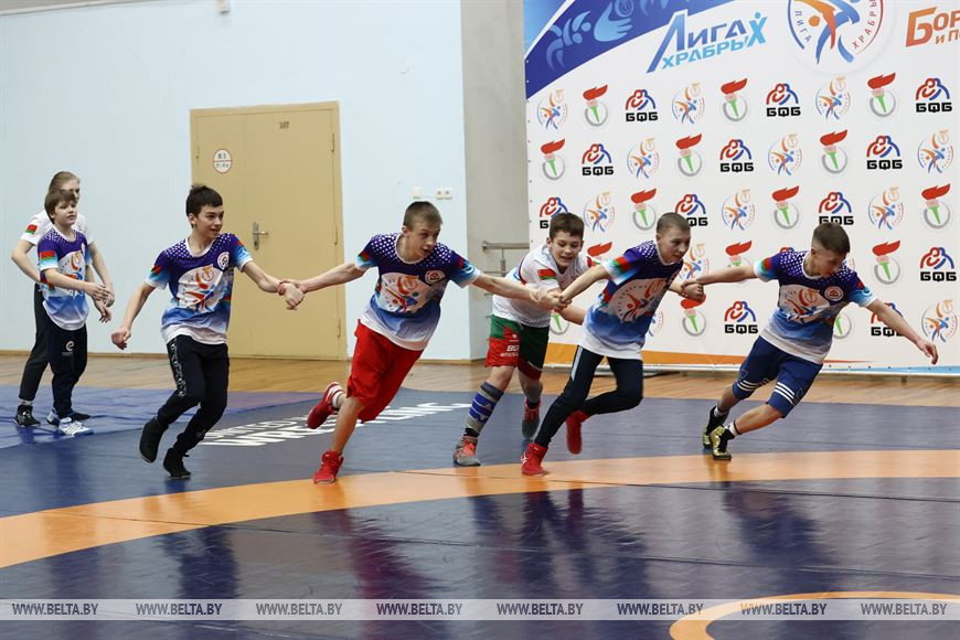 29 марта, Минск /Корр. БЕЛТА/. Первый детский лагерь для участников республиканского турнира по борьбе "Лига храбрых" организовали в Минске. Он работает с 27 марта по 1 апреля. Сегодня во Дворце борьбы имени Александра Медведя прошла тренировка детей с борцом, обладателем Кубка мира, серебряным призером чемпионата Европы, участником Олимпийских игр в Токио (2020 год) Кириллом Маскевичем.-0-