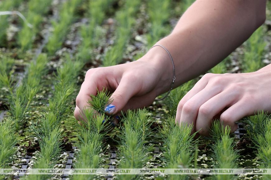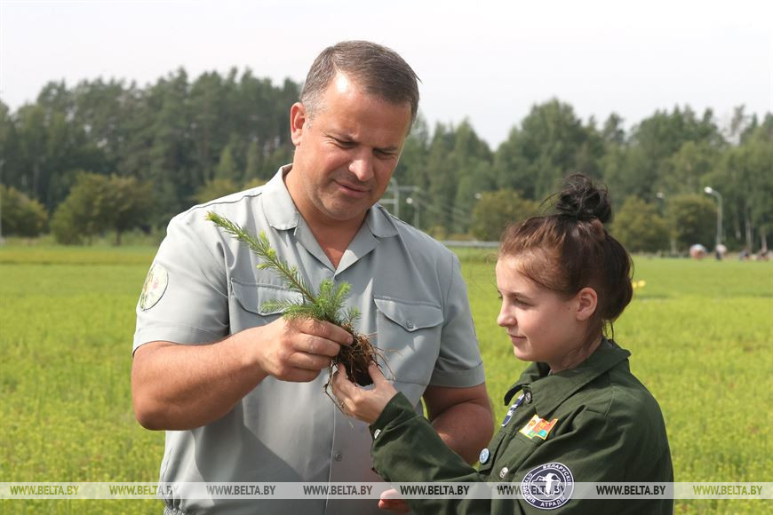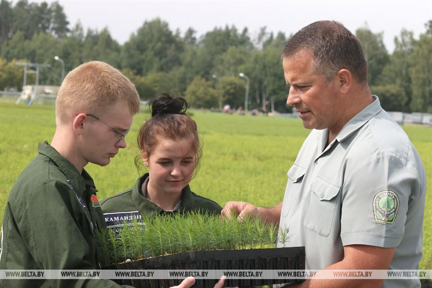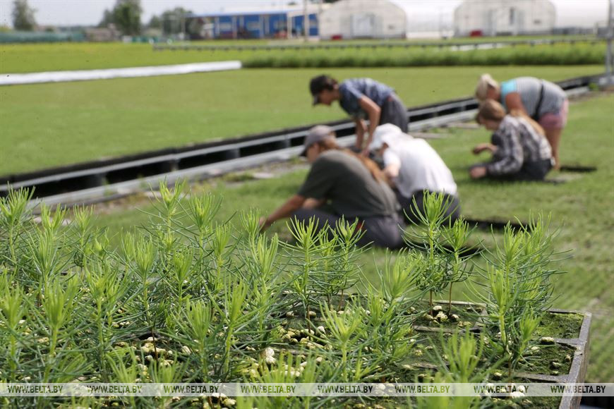 2 августа, Могилев /Корр. БЕЛТА/. Бойцы двух экологических студенческих отрядов - "Ударник" имени героя СССР К.П. Орловского и "Гражданин" имени героя СССР И.И. Якубовского - помогают Могилевскому лесхозу в прополке элитных саженцев в питомнике.-0-