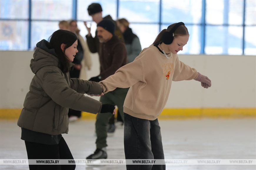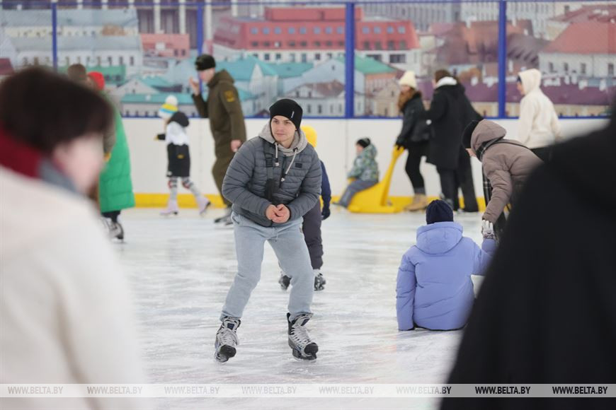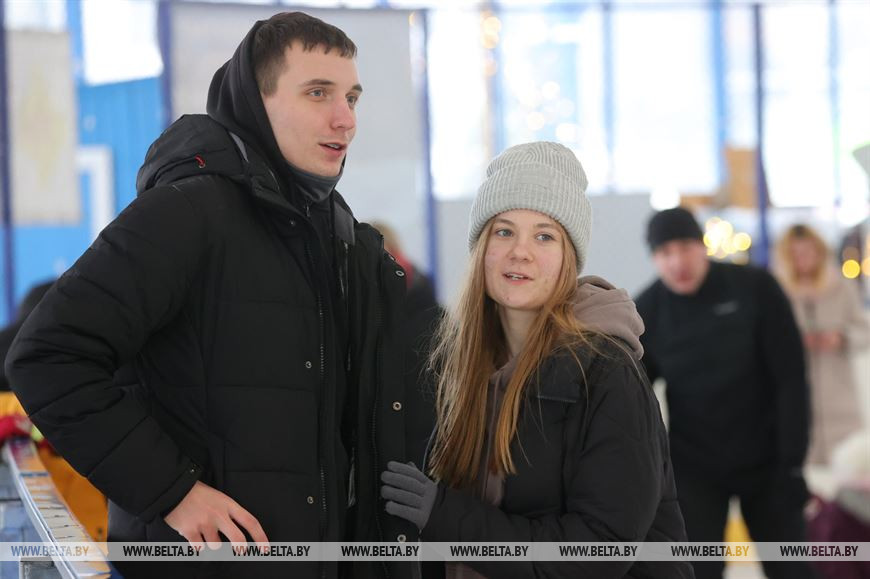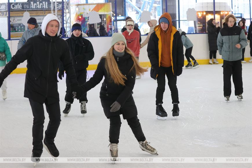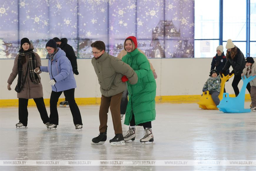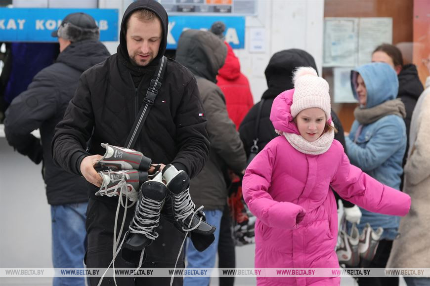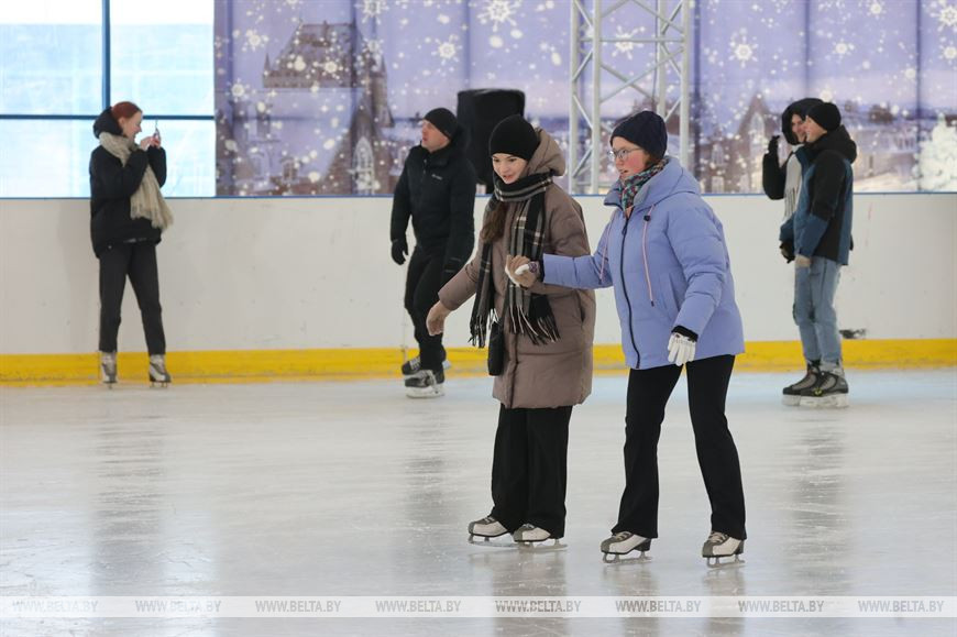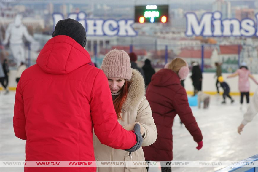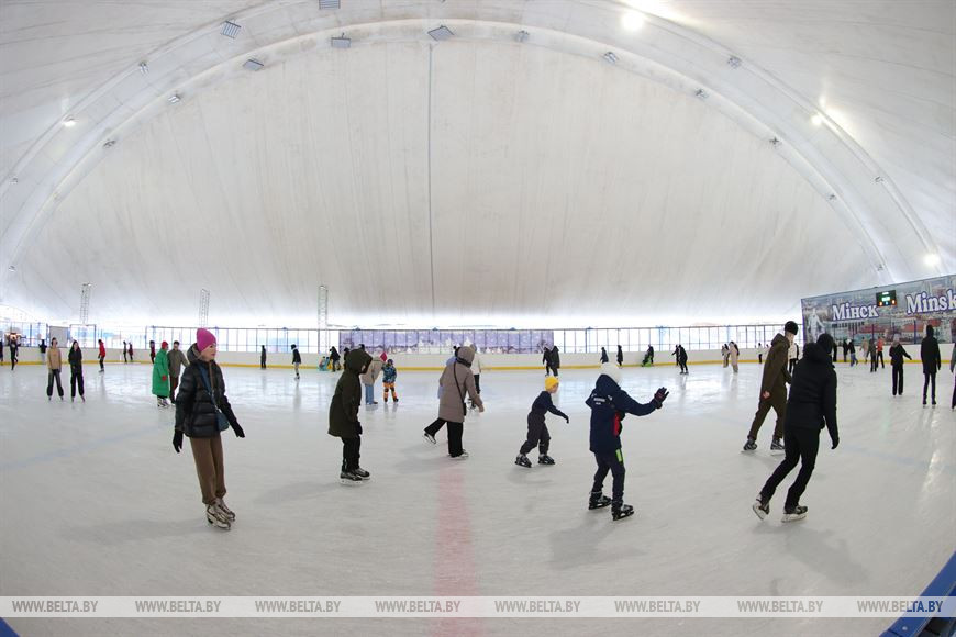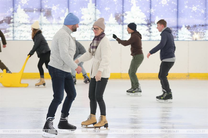 26 ноября, Минск /Корр. БЕЛТА/. В начале месяца мобильный каток возле Дворца спорта открыл новый сезон и уже пользуется популярностью. Жители и гости города с удовольствием катаются на коньках. На катке организовано музыкальное сопровождение, работают точки общепита с горячей выпечкой и напитками, прокат коньков. Есть биотуалеты и камеры хранения.-0-