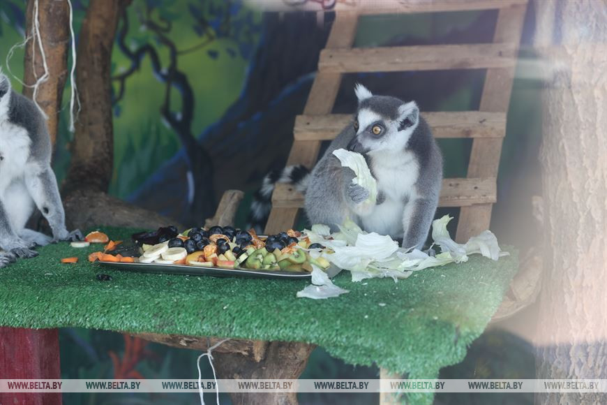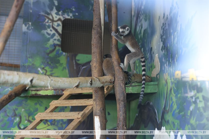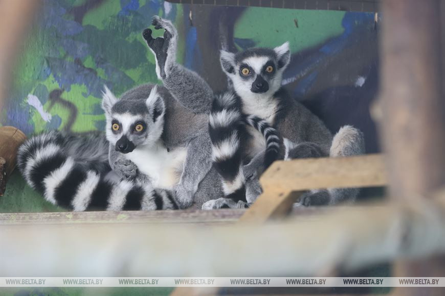 11 октября, Минск /Корр. БЕЛТА/. В начале августа лемуры Марта и Юниор стали родителями сразу двух озорных малышей. Парочка этих кольцехвостых приехала в конце 2020 года из Москвы. Сейчас малышей лемуров перевели в вольер, где за ними могут наблюдать посетители Минского зоопарка.-0-