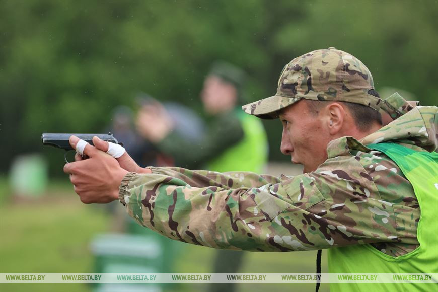 25 мая, Гродно /Корр. БЕЛТА/. Международные соревнования пограничных ведомств государств-участников СНГ и государственных органов Республики Беларусь членов БФСО "Динамо" по служебному биатлону проходят на территории Гродненской пограничной группы. В соревнованиях принимают участие сборные команды пограничных ведомств государств СНГ и государственных органов Беларуси - членов БФСО "Динамо". Определят лучших в индивидуальных забегах и эстафете 26 мая.-0-
