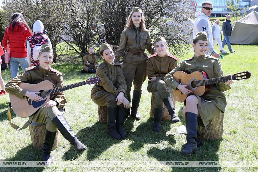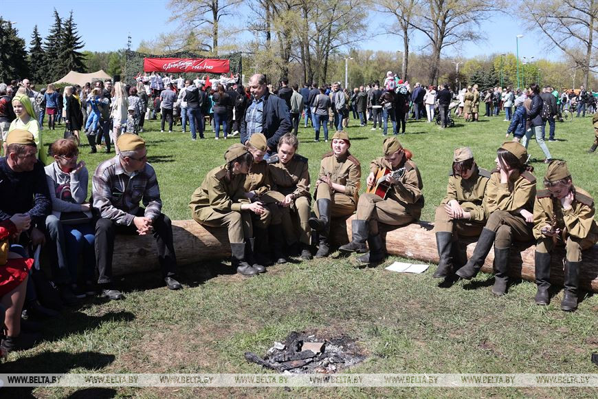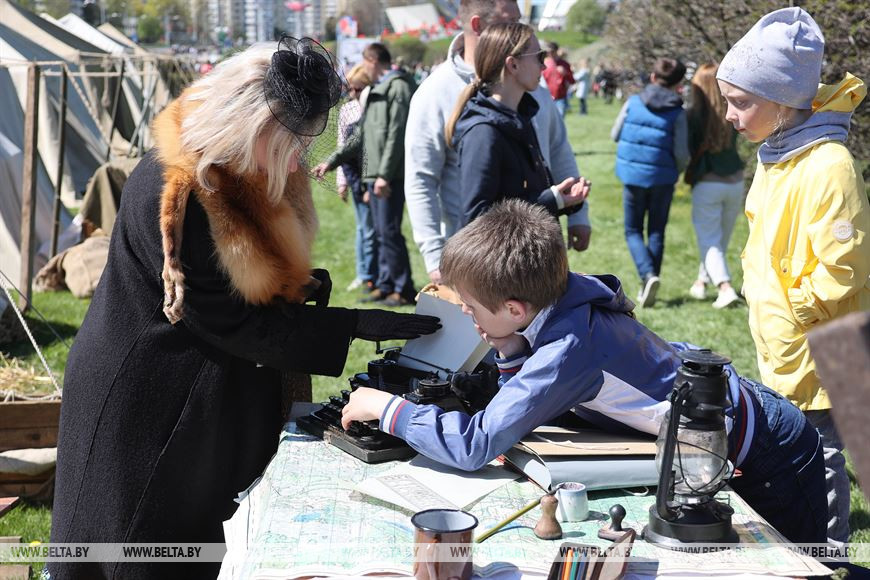 9 мая, Минск /Корр. БЕЛТА/. Минчане и гости столицы отмечают 9 Мая в парке Победы. Тут организовано множество интересных тематических локаций.-0-