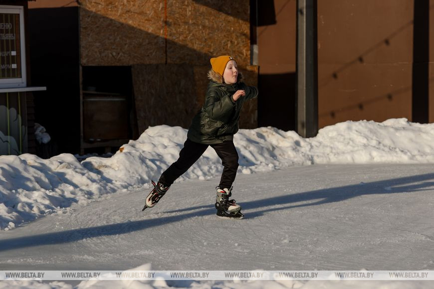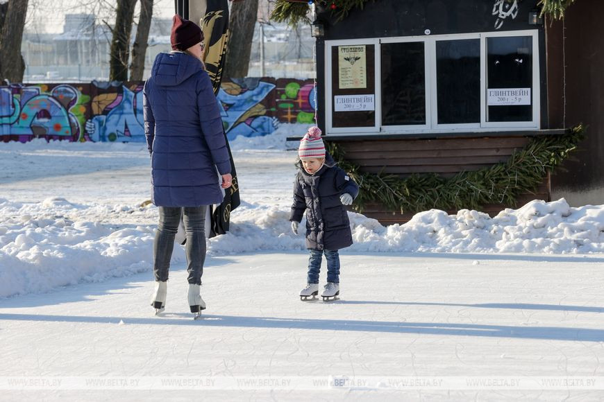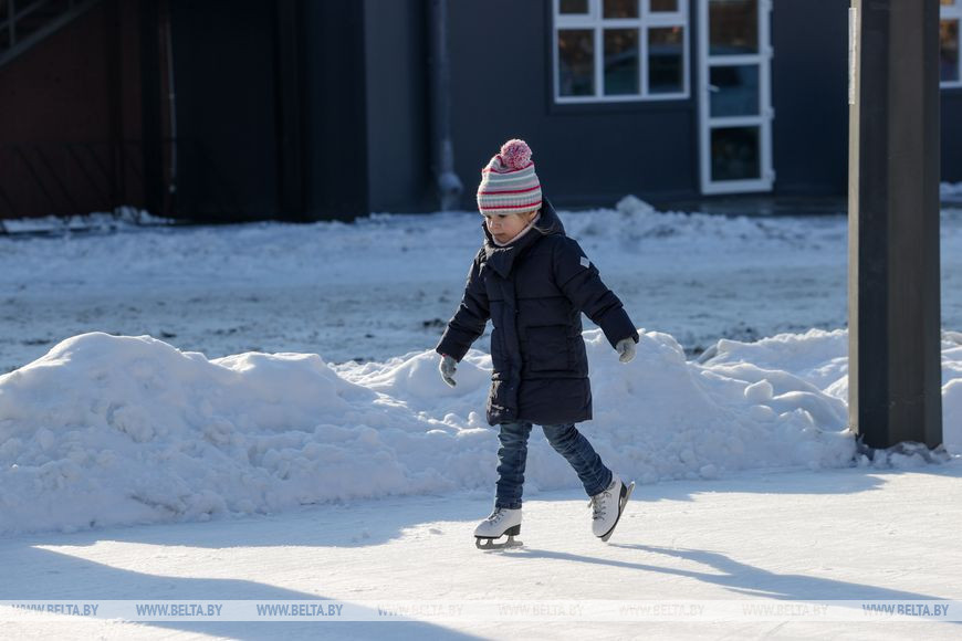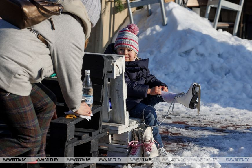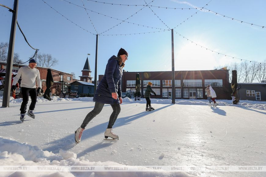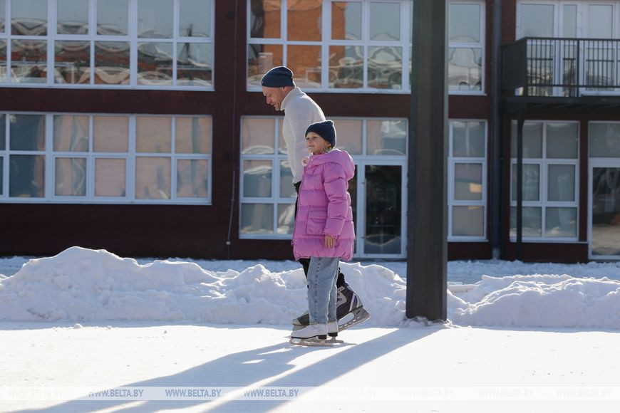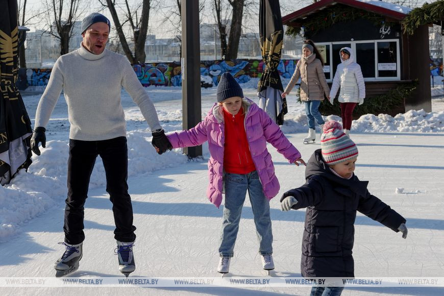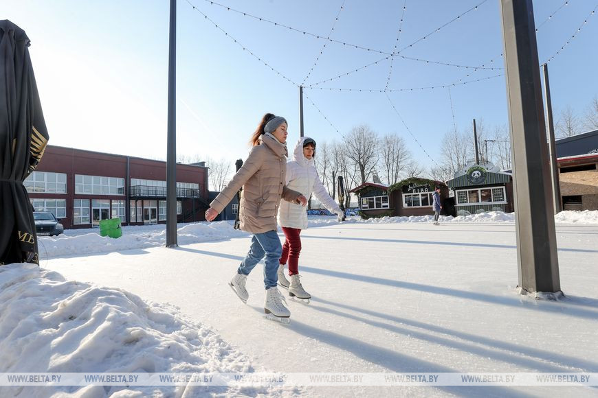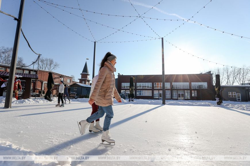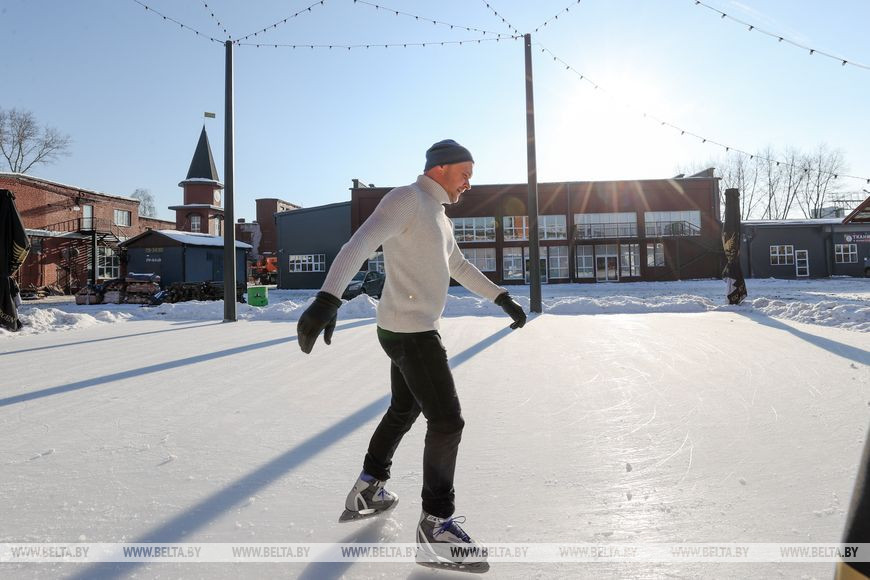 24 января, Минск /Корр. БЕЛТА/. В выходные минчане охотно посещали катки, один из которых разместился в городском пространстве "Dвор" на территории реконструированного заброшенного производства по улице Кальварийской.-0-