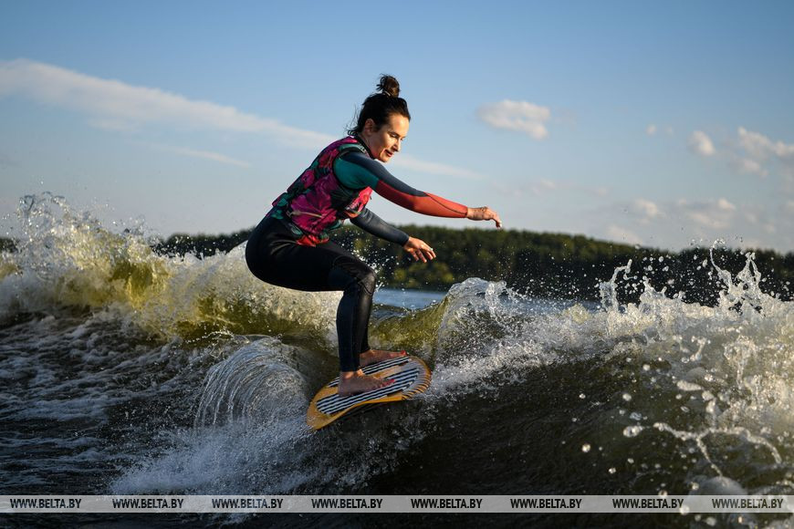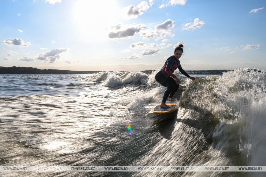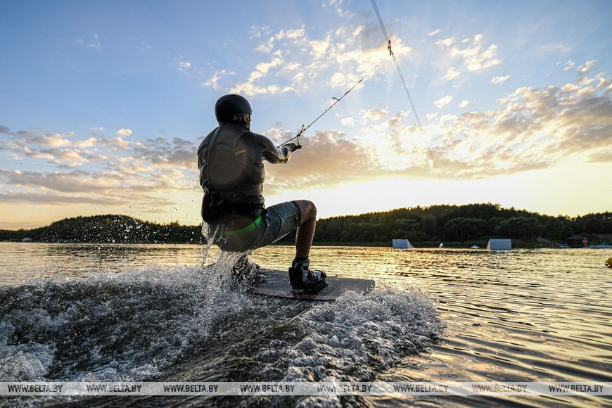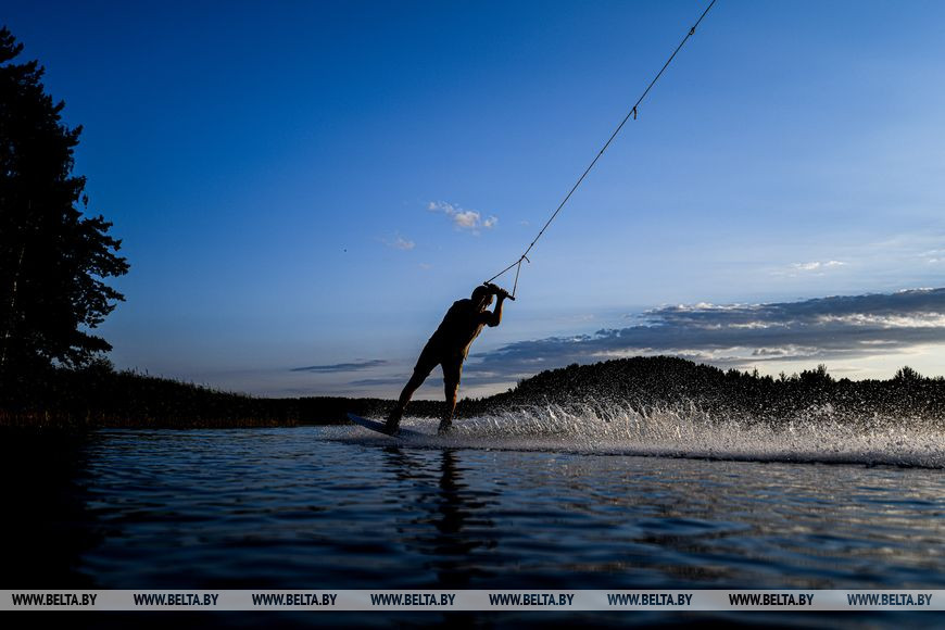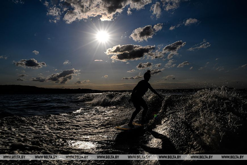 30 июля, Минск /Корр. БЕЛТА/. Теплая погода побудила многих вечером выехать на городские водохранилища, где можно не только позагорать и поплавать, но заняться водными видами спорта, такими как серфинг и вейкбординг.-0-