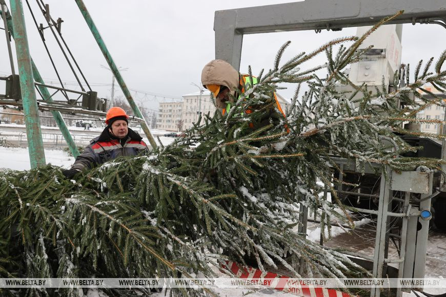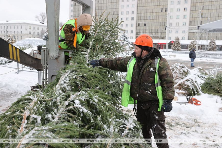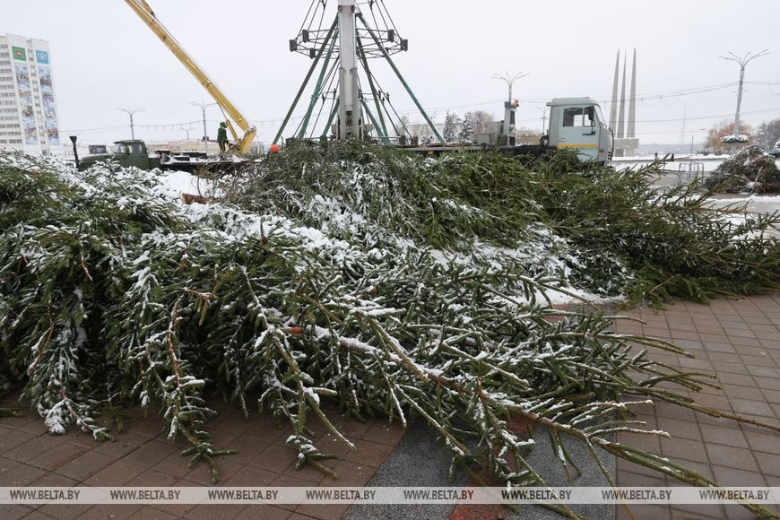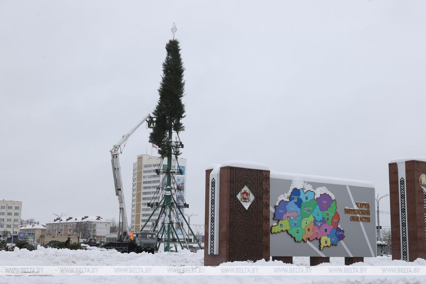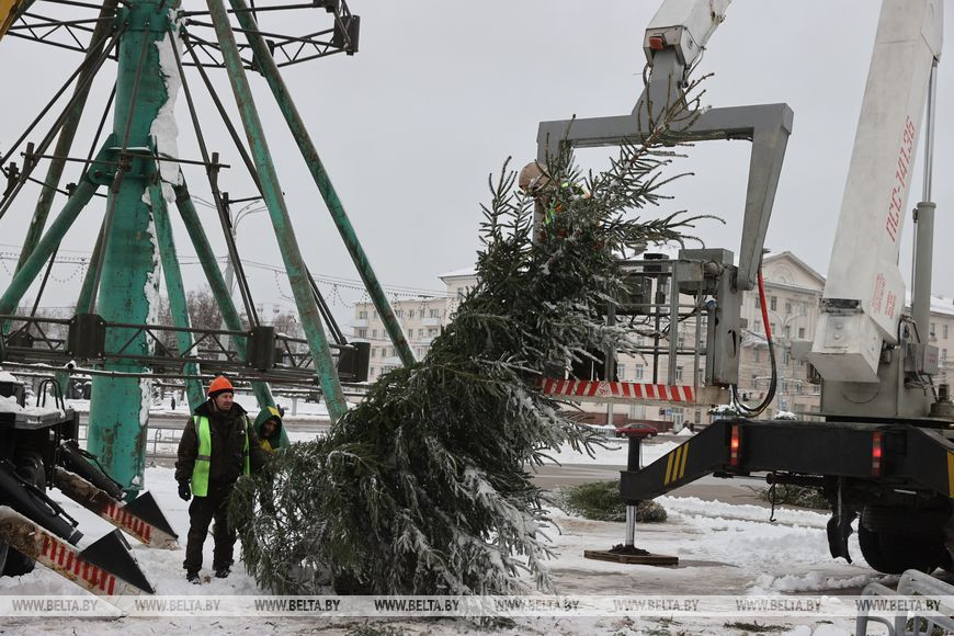 28 ноября, Витебск /Корр. БЕЛТА/. В Витебске на площади Победы идет монтаж главной новогодней елки. Высота составит более 30 метров. В ее оформлении планируют использовать около 200 елей.-0-