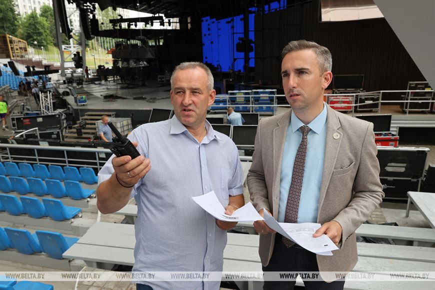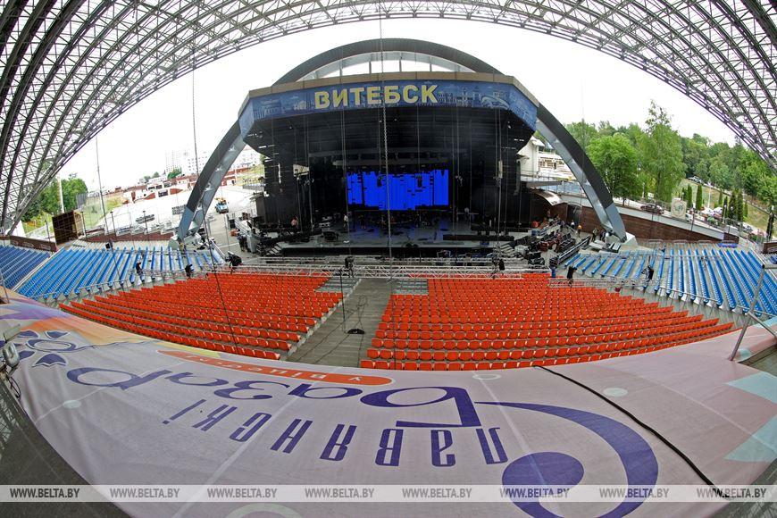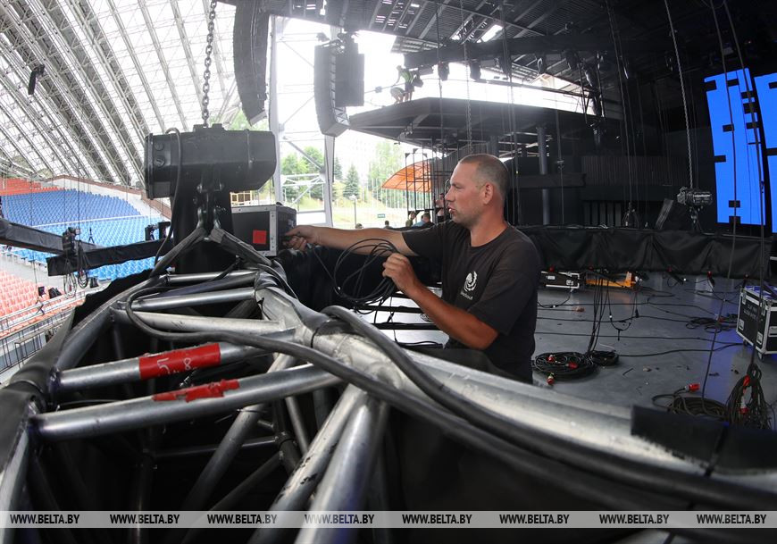 6 июля, Витебск /Корр. БЕЛТА/. Монтаж оборудования и оформление сцены идет на главной площадке XXXII Международного фестиваля искусств "Славянский базар в Витебске".-0-