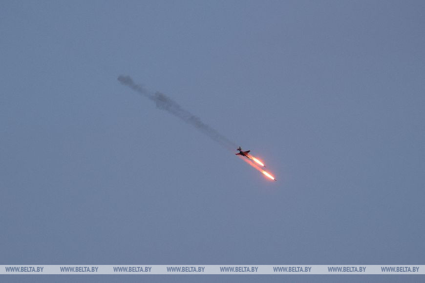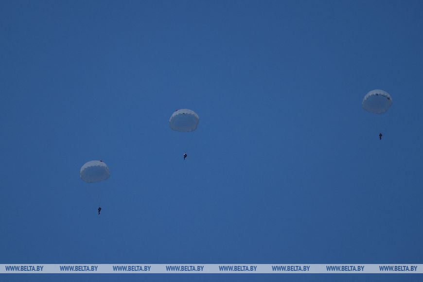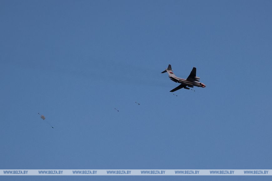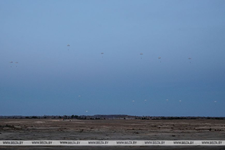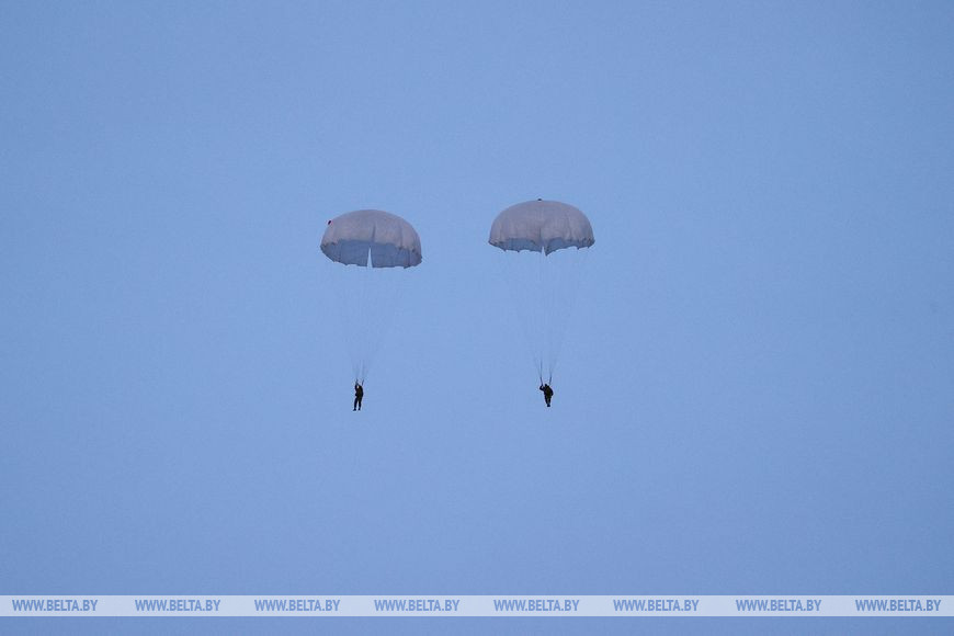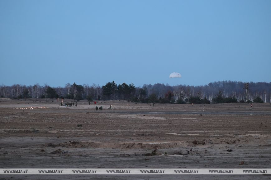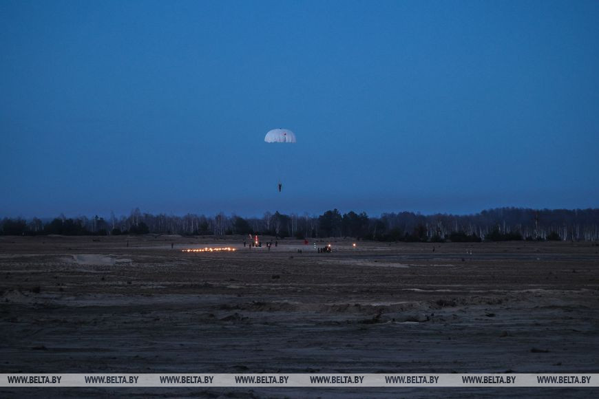 2 апреля, Минск /Корр. БЕЛТА/. В ходе бригадного тактического учения около 80 человек личного состава 38 отдельной десантно-штурмовой бригады отработали ночное десантирование на полигоне Брестский. Выброска десанта происходила с высоты 800 метров со штатным вооружением и экипировкой из двух самолетов ИЛ-76 МД при поддержке истребителей Як-130 ВВС Республики Беларусь.-0-