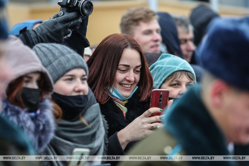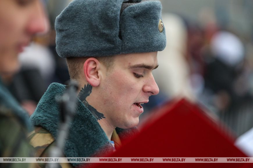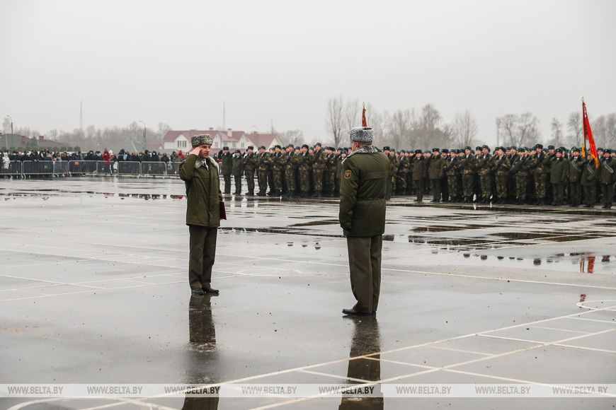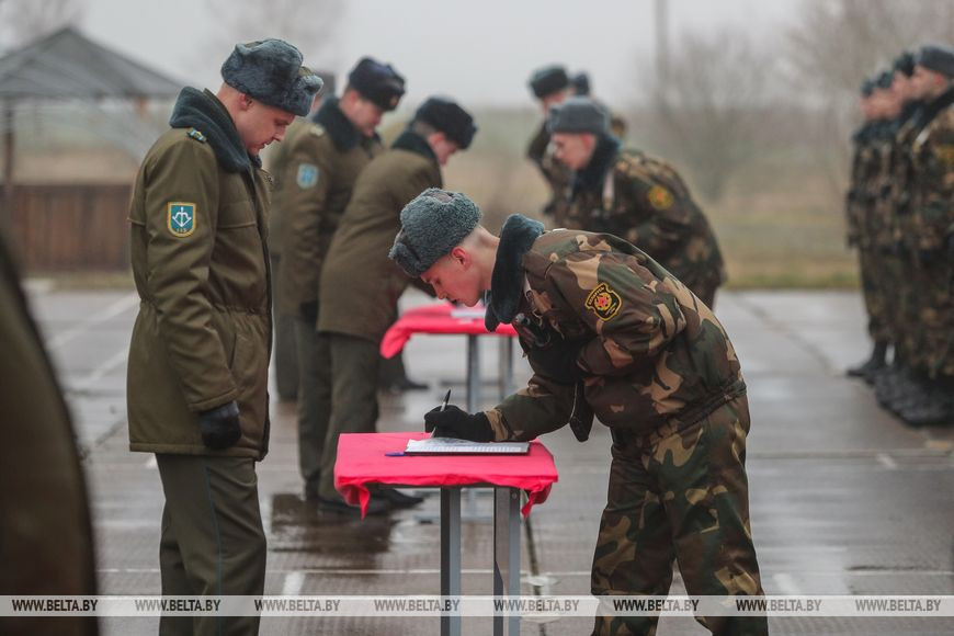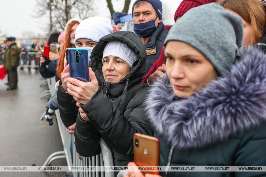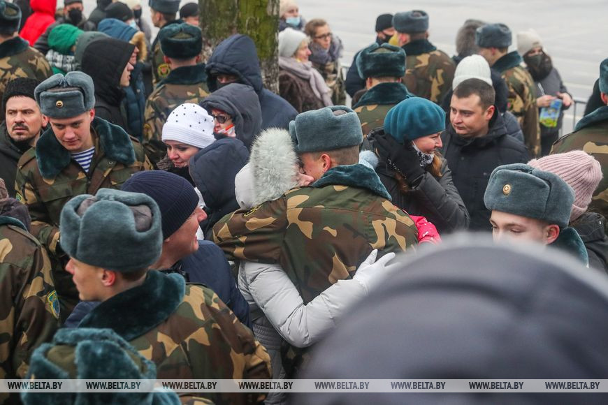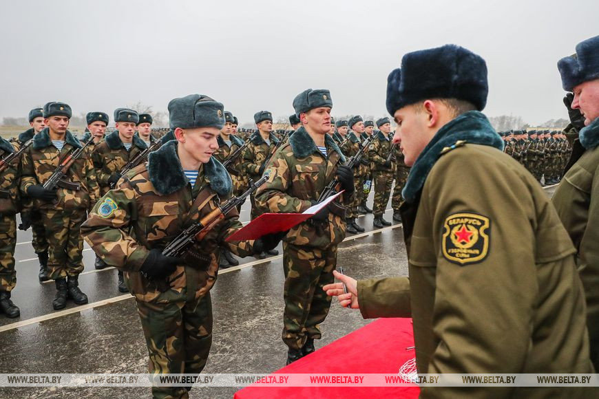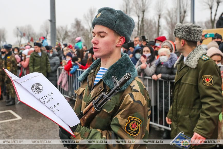 12 декабря, Брест /Корр. БЕЛТА/. 12 декабря новое пополнение Брестского гарнизона приняло военную присягу. В связи с эпидемиологической ситуацией церемонию проводили на территориях войсковых частей гарнизона. Самая скромная прошла на территории войсковой части 115-го зенитного ракетного полка Военно-воздушных сил и войск ПВО. Здесь присягу на верность и защиту Родины и воздушных границ Беларуси приняли около 50 человек. Самое большое пополнение новобранцев - около 700 человек - принесли торжественную клятву в 38-й Брестской отдельной гвардейской десантно-штурмовой Венской Краснознаменной бригаде ССО Вооруженных Сил Республики Беларусь.-0-