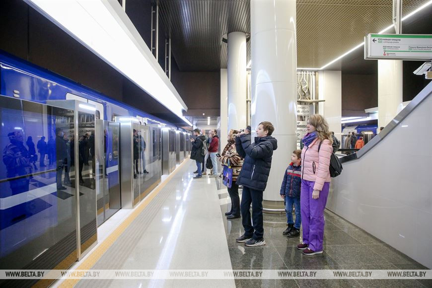 7 ноября, Минск /Корр. БЕЛТА/. 7 ноября в 12.30 четыре новые станции третьей линии метро: "Ковальская Слобода", "Площадь Франтишка Богушевича", "Вокзальная" и "Юбилейная площадь" открылись для пассажиров.-0-