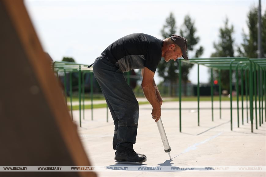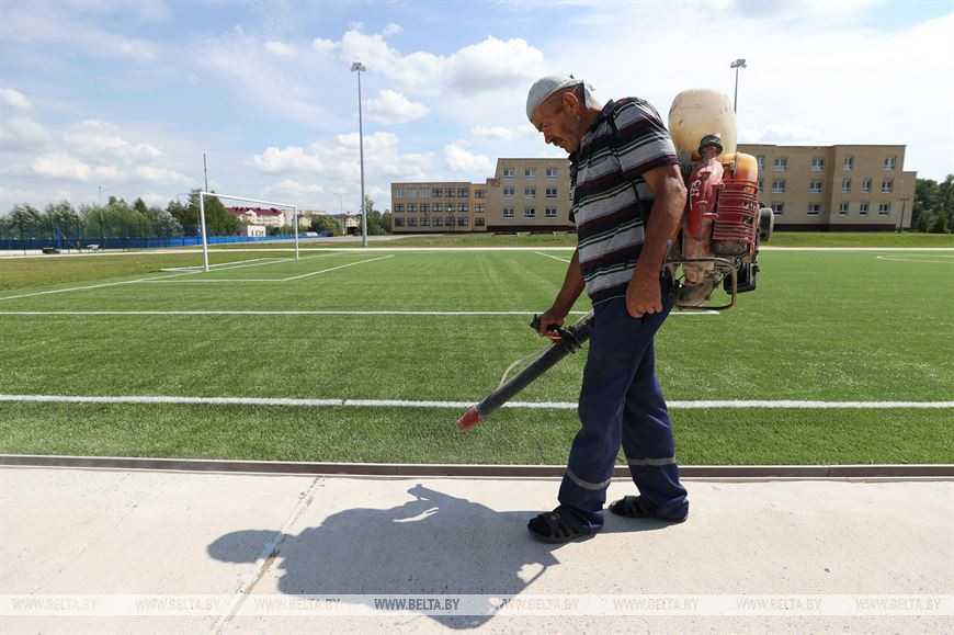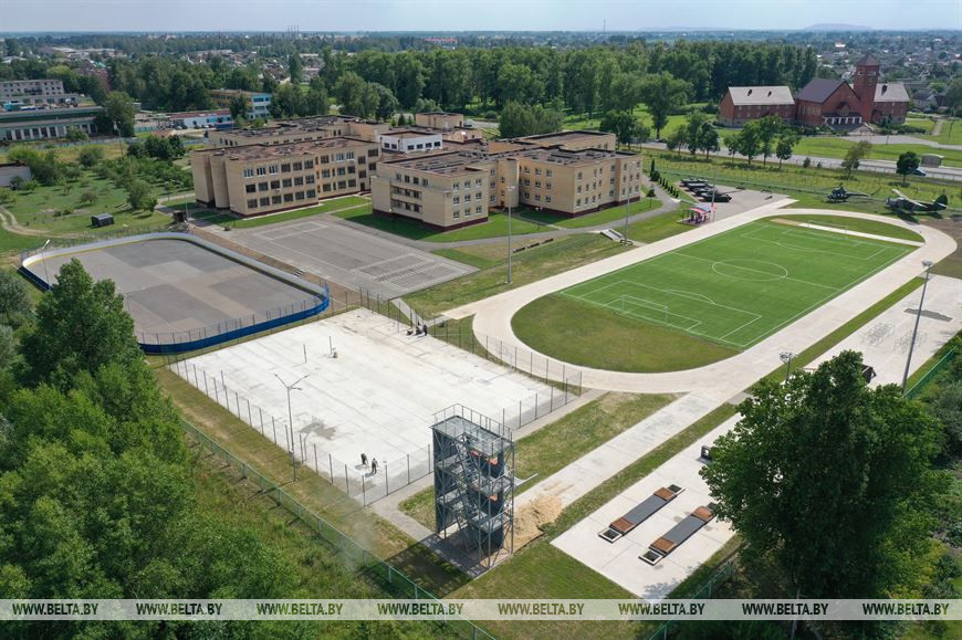 3 августа, Слуцк /Корр. БЕЛТА/. Обновленный стадион порадует воспитанников Минского областного кадетского училища, которое базируется в Слуцке. Возведение спортивного объекта находится на финишной прямой, открытие планируется к началу учебного года. В составе нового комплекса - футбольное поле с искусственным покрытием, площадка для баскетбола, хоккея и волейбола. Также на территории стадиона установлены тренажеры и возведена вышка для занятий пожарно-спасательным спортом. -0-