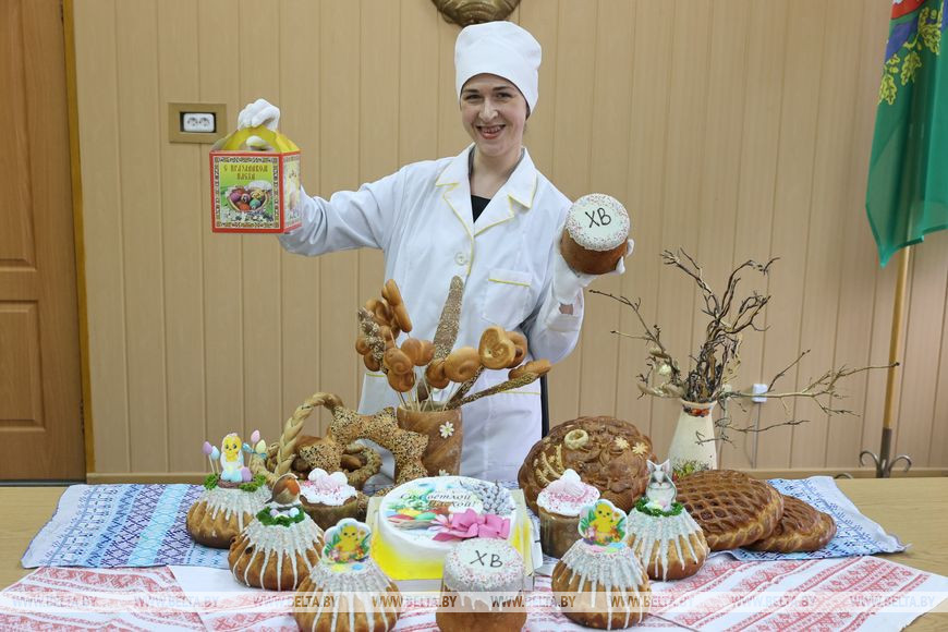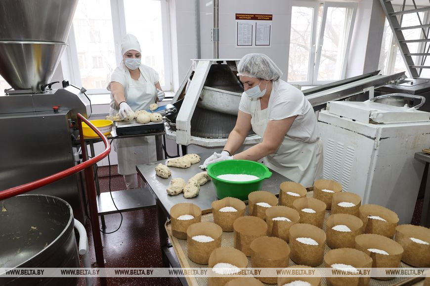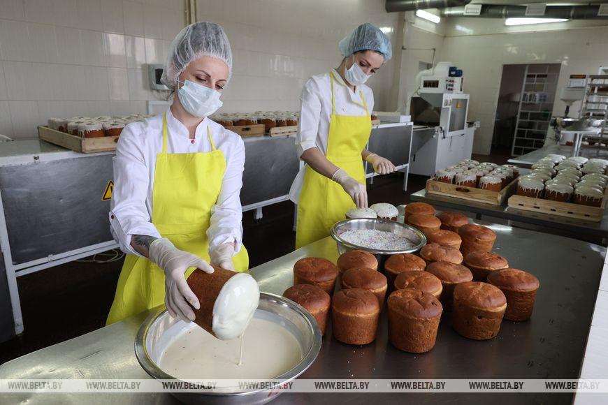 21 апреля, Витебск /Корр. БЕЛТА/. ОАО "Витебскхлебпром" приступило к выпуску пасхальной продукции. В торговую сеть Беларуси и России предприятие планирует поставить около 17 т куличей, кексов, тортов и сдобных булок.-0-