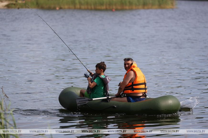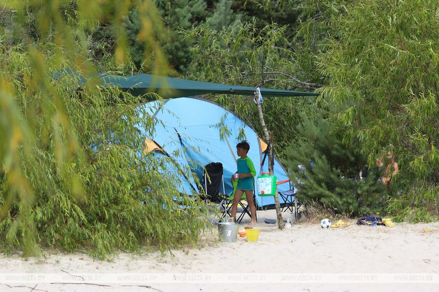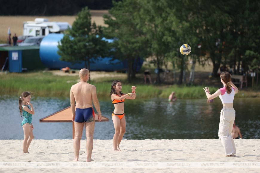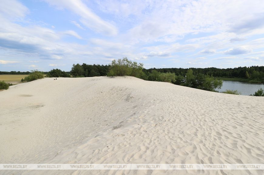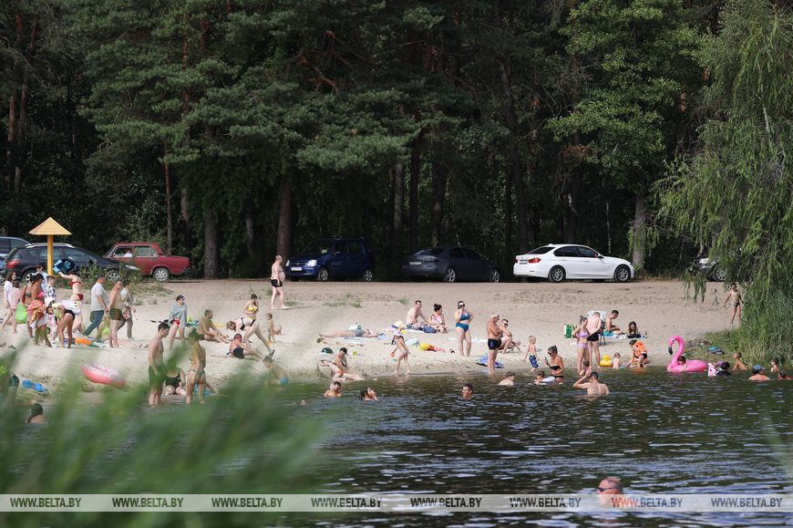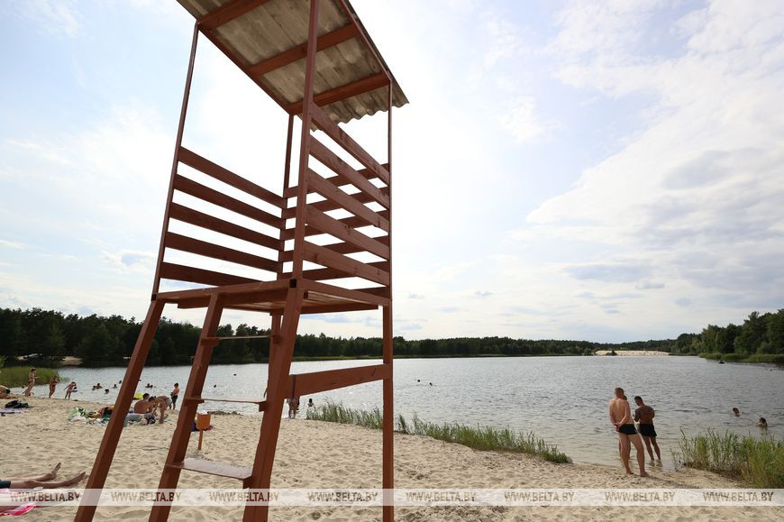 20 июля, Брест /Корр. БЕЛТА/. Озеро Каташи под Кобрином привлекает любителей пляжного отдыха мелким белым песком, бирюзовой водой и необычным рельефом местности: здесь встречаются самые настоящие дюны.-0-
