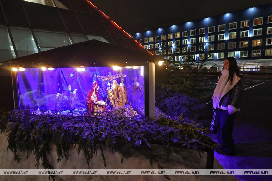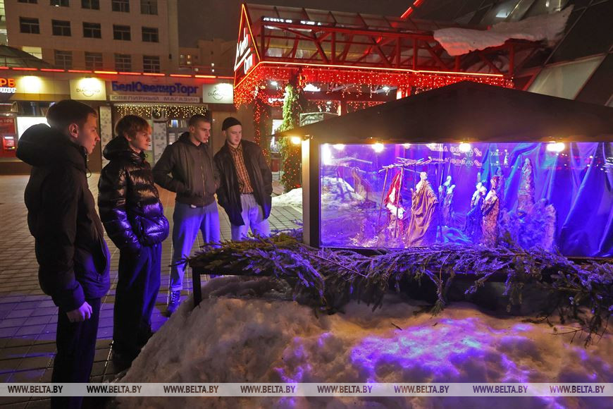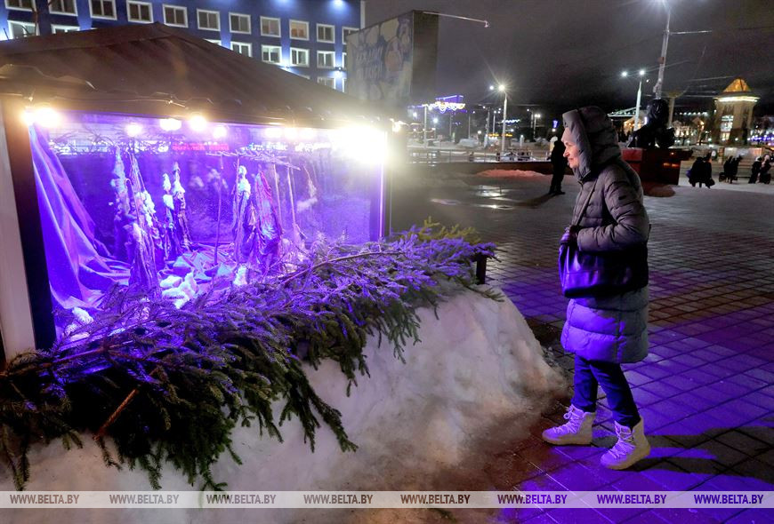 19 декабря, Витебск /Корр. БЕЛТА/. В центре Витебска накануне Нового года появилась рождественская инсталляция.-0-