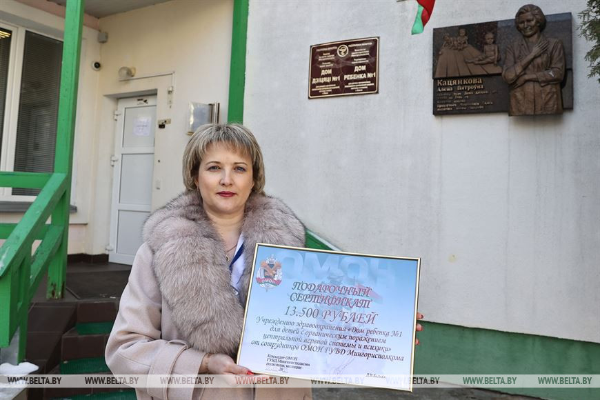 24 марта, Минск /Корр. БЕЛТА/. Сотрудники отряда милиции особого назначения посетили воспитанников "Дома ребенка № 1 для детей с органическим поражением центральной нервной системы и психики" и передали в учреждение 13,5 тысяч рублей.-0-