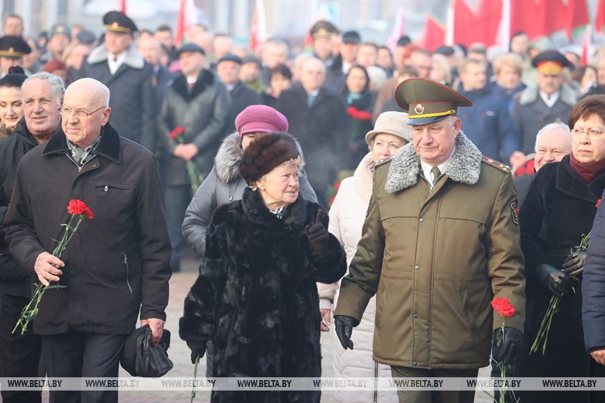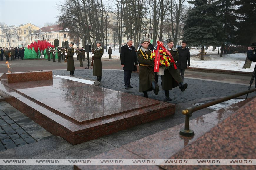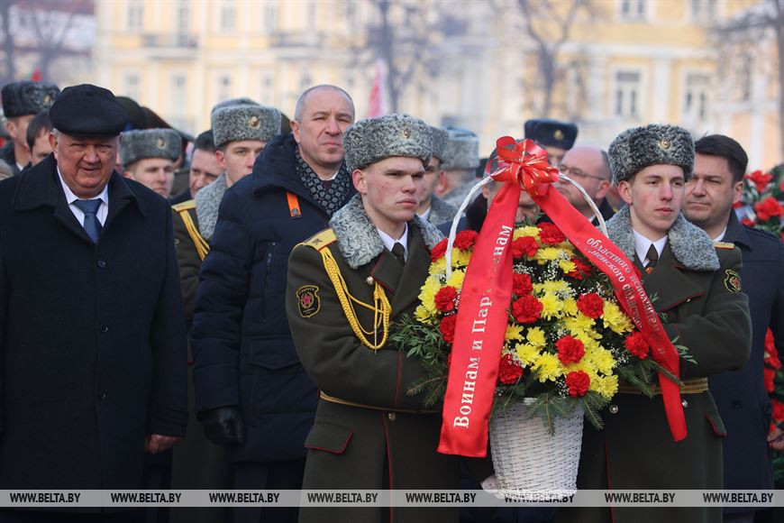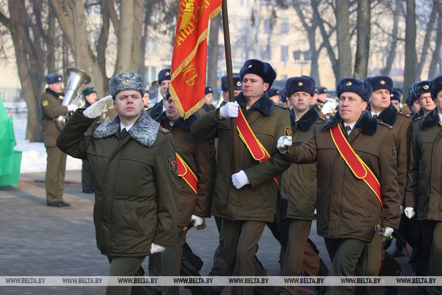 23 февраля, Гродно /Корр. БЕЛТА/. Торжественные мероприятия ко Дню защитников Отечества прошли в Гродно в мемориальном комплексе, расположенном в парке им.Жилибера. Здесь состоялись возложение венков и цветов к братской могиле советским воинам и партизанам, погибшим в годы Великой Отечественной войны, и прохождение войск Гродненского гарнизона. -0-
