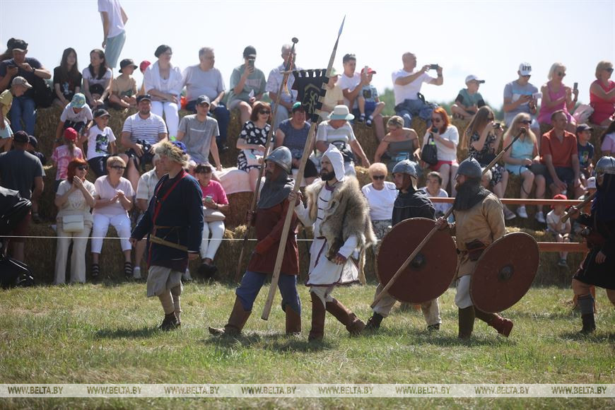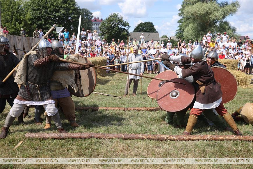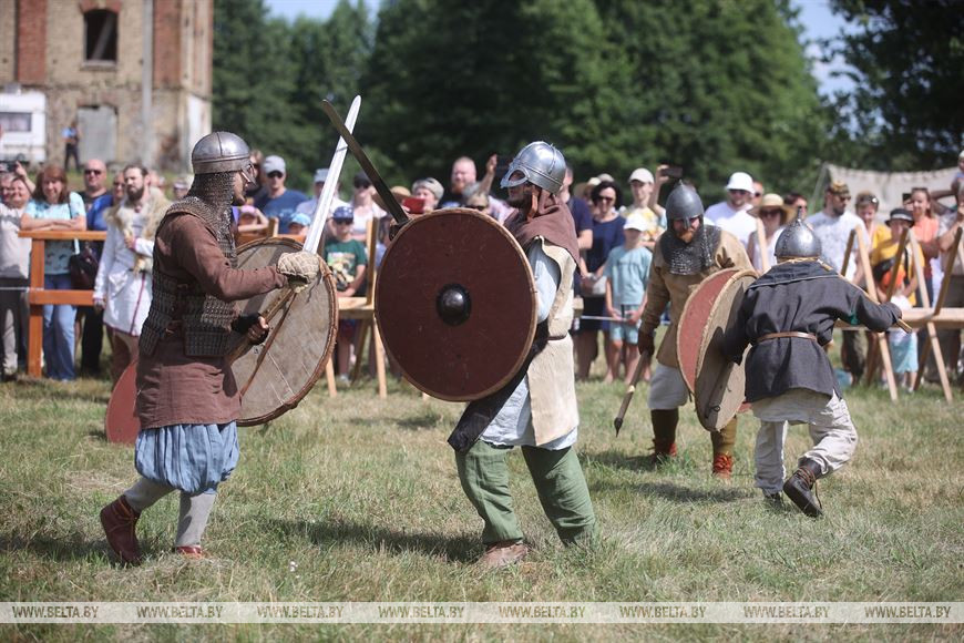 15 июля, Зельва /Корр. БЕЛТА/. Третий международный фестиваль исторической реконструкции "Легендарные эпохи" собрал участников из Беларуси и России. Гостей масштабного мероприятия ждало погружение во времена викингов, рыцарей, сражений с Наполеоном, Первой и Второй мировых войн. В каждом сюжете - экскурсы в историю, знакомство с оружием, тактикой боев и маневров, показательные выступления. Фестиваль "Легендарные эпохи" стал одним из ярких брендов не только Зельвенщины, но и Гродненского региона.-0-