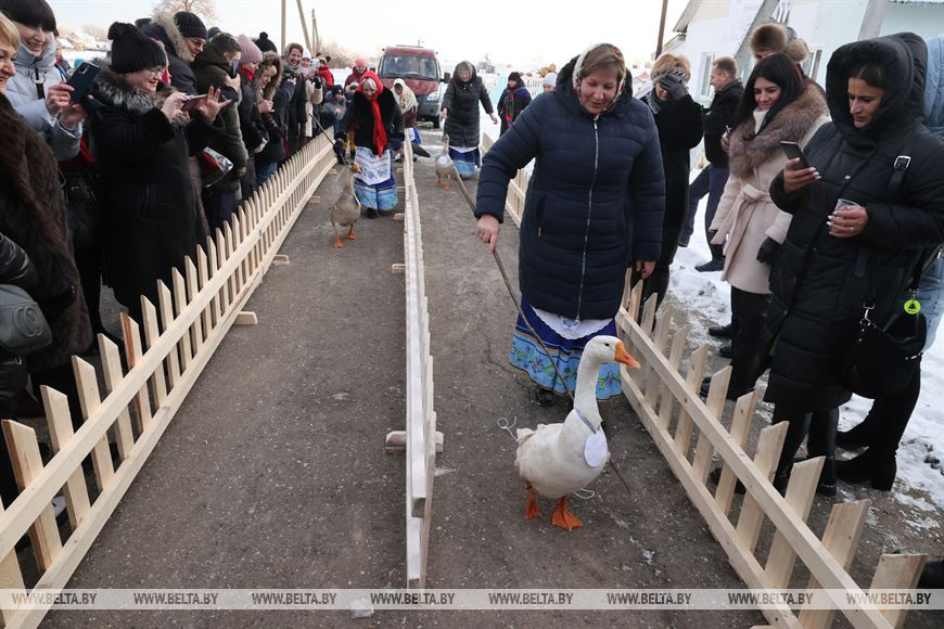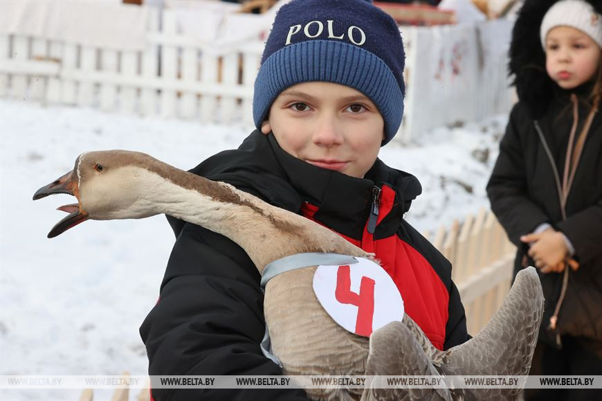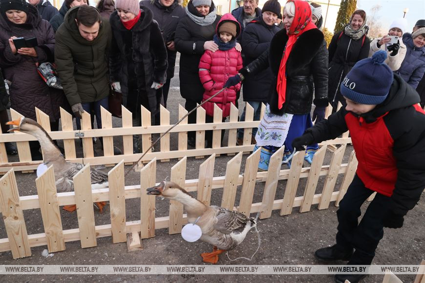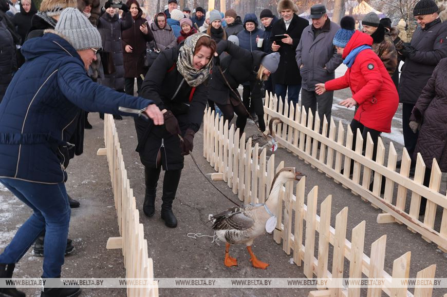 1 декабря, Могилев /Корр. БЕЛТА/. В программу мероприятия вошли театрализованное представление и выступления творческих коллективов района, конкурс "Лучшая хозяйка АПК - 2022", в котором заявлены семь участниц - по одной от каждого сельсовета, выставка-продажа изделий декоративно-прикладного искусства, работа торговых рядов. Кроме того, гостей народного праздника ждало вкусное угощенье. Самым зрелищным этапом стали гусиные бега. В забеге приняли участие шесть пар гусей, которым предстояло преодолеть дистанцию до 15 метров. -0-