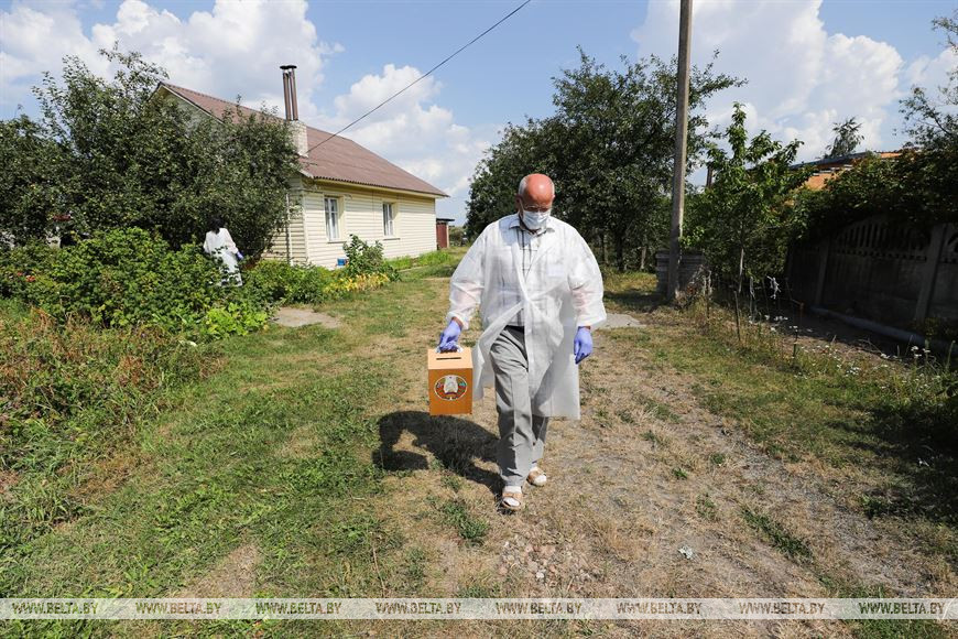 9 августа, Брест /Корр. БЕЛТА/. Проводится голосование на избирательном участке №11 агрогородка Чернавчицы Брестского района.-0-