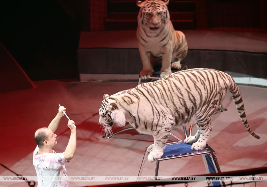 21 марта, Гомель /Корр. БЕЛТА/. В гомельском цирке представлена новая программа "Люди! Звери! Сенсация!" На цирковой арене - выступления гимнастов, дрессированных собачек, попугаев, белых тигров и многое другое. Продлится программа до 18 апреля. -0-