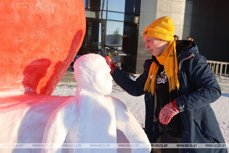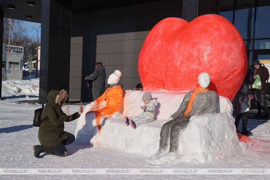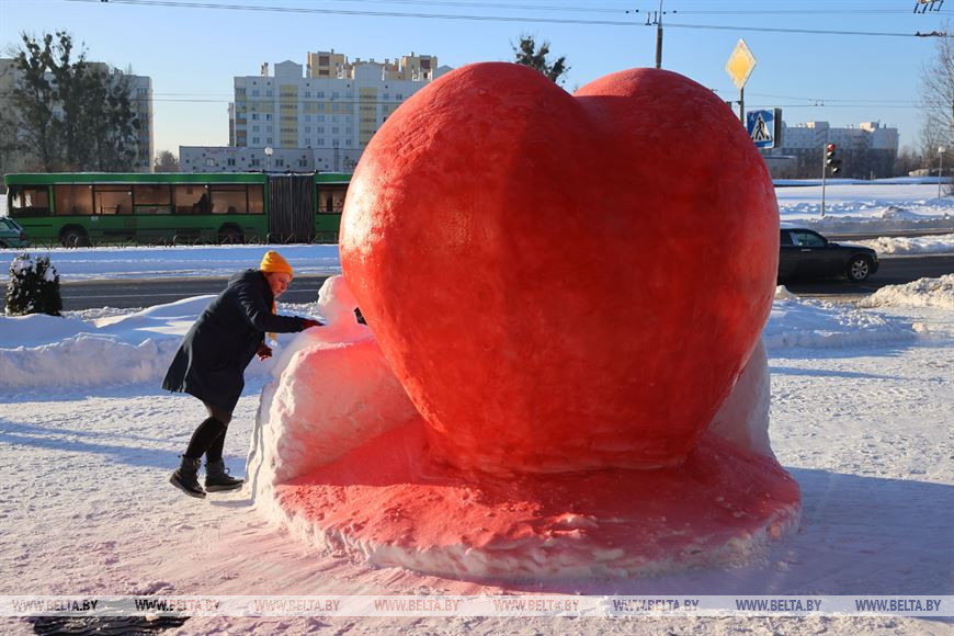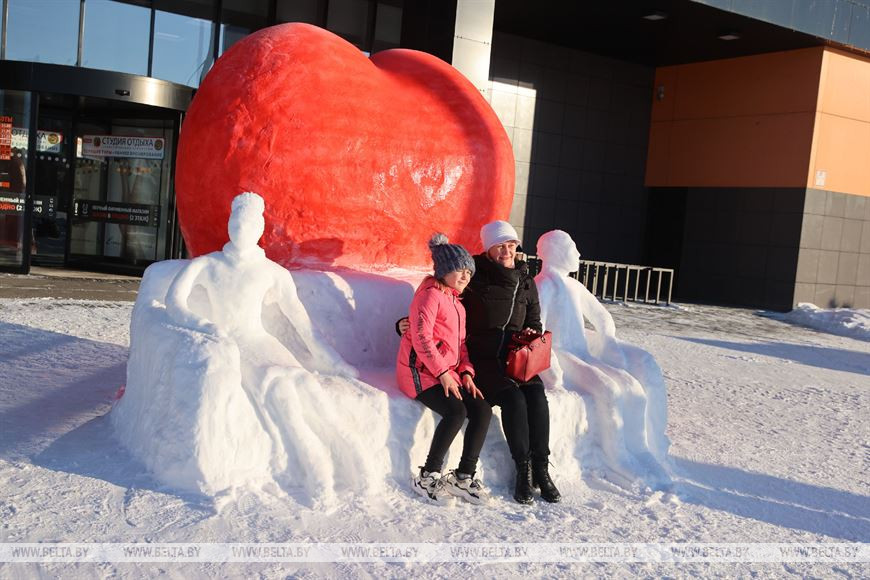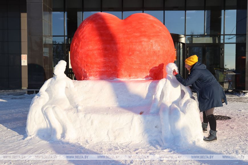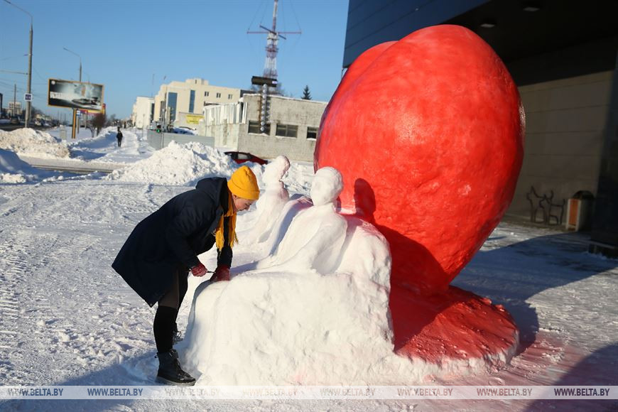 5 февраля, Гродно /Корр. БЕЛТА/. В Гродно возле торгового центра на улице Дубко создали снежную композицию ко Дню влюбленных. Автор скульптуры Каролина Акуто всего за 10 часов сделала из пяти кубов снега скамейку с огромным сердцем. Каролина уверена, что композиция станет местом для свиданий и отличной фотозоной. -0-