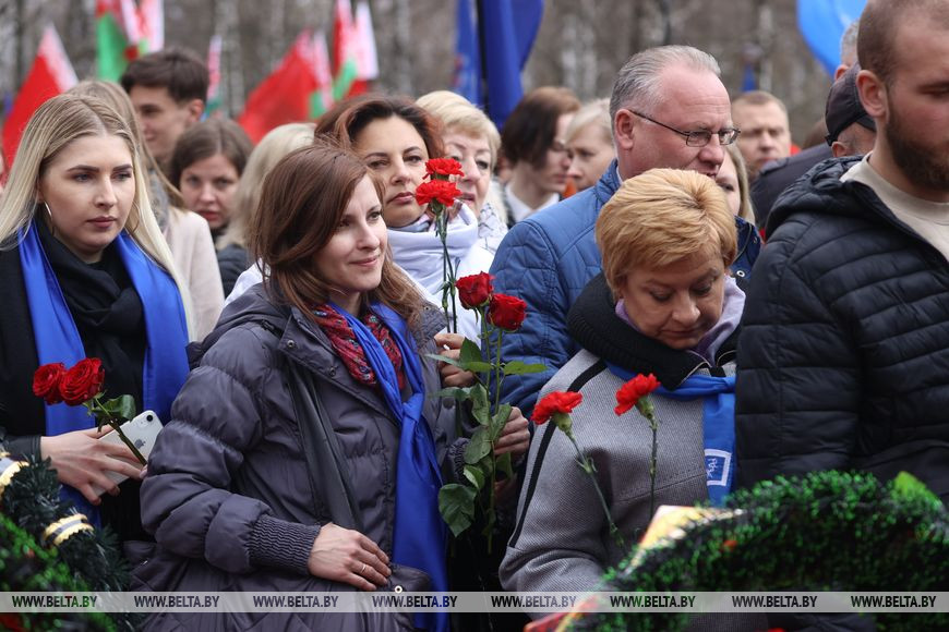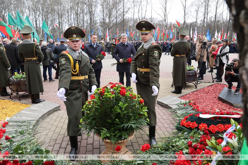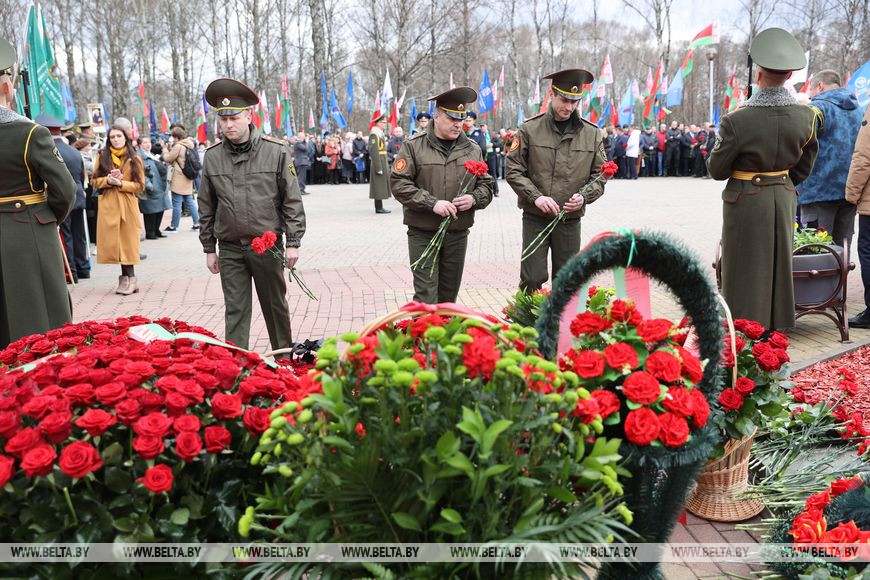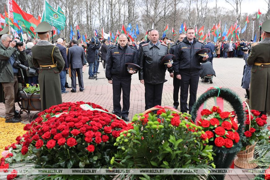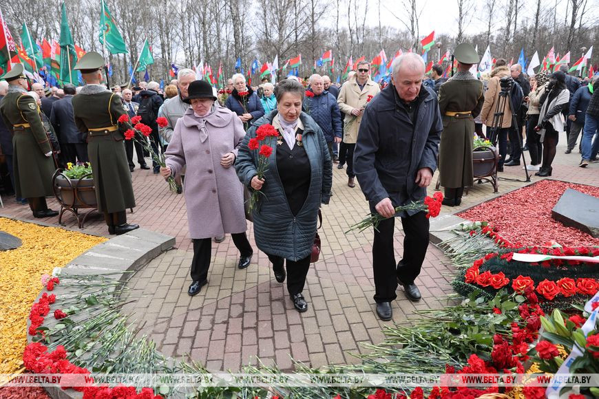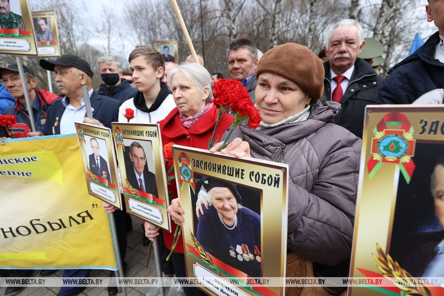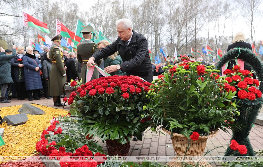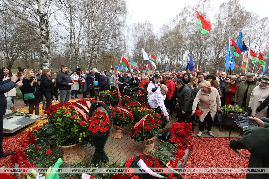 26 апреля, Минск /Корр. БЕЛТА/. Память жертв чернобыльской катастрофы почтили 26 апреля в столичном парке Дружбы народов. В день 36-й годовщины аварии на Чернобыльской АЭС состоялось возложение цветов к памятным знакам "Ахвярам Чарнобыля" и "Камень мира Хиросимы".-0-