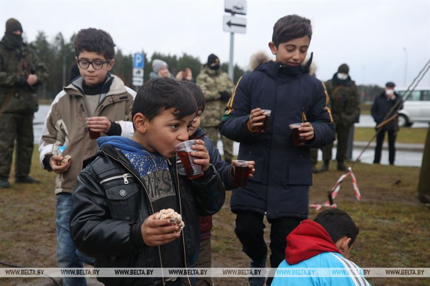 В ТЛЦ находятся около 2 тыс. беженцев. Центр временного пребывания был организован по поручению Президента Беларуси. Белорусская сторона делает все возможное, чтобы обеспечить беженцев всем необходимым. Здесь организовано горячее питание, есть вода, спальные принадлежности, пункт вакцинации, круглосуточно дежурят медики. Ежедневно в ТЛЦ беженцам доставляют около 8 тонн продуктов.-0-