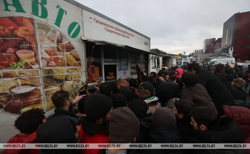 19 ноября, /Корр. БЕЛТА/. Автолавка, которая работает днем на территории транспортно-логистического центра, пользуется повышенным спросом у беженцев. Они сами попросили организовать торговую точку в центре временного пребывания.