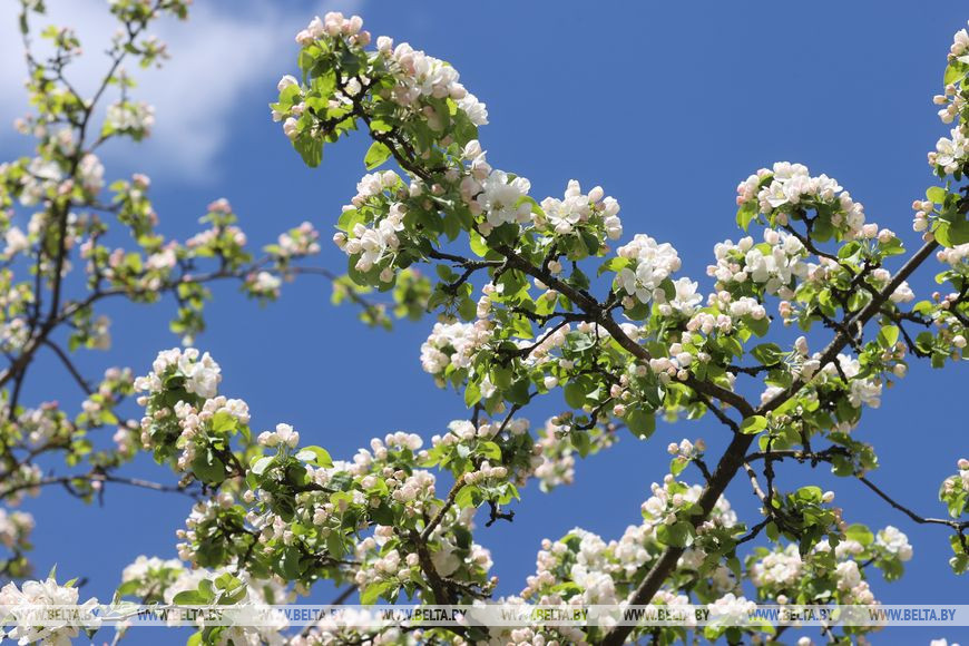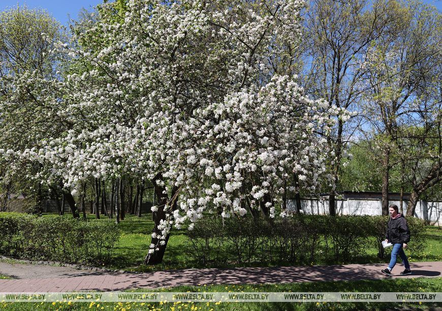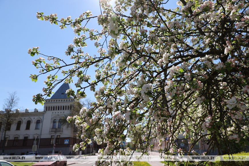 18 мая, Витебск /Корр. БЕЛТА/. Цветущие яблони и другие плодовые деревья украсили улицы Витебска.-0-