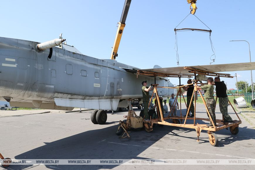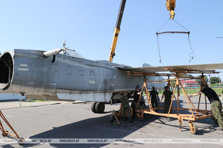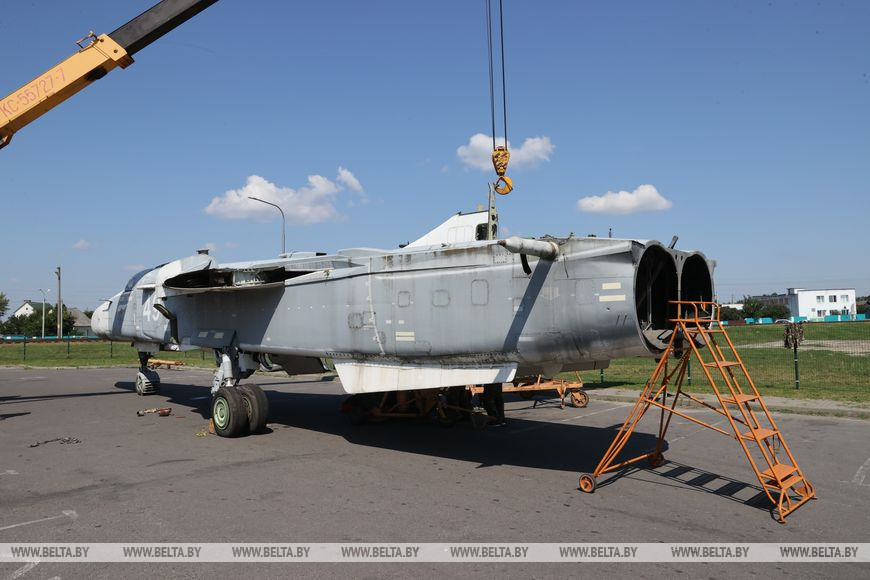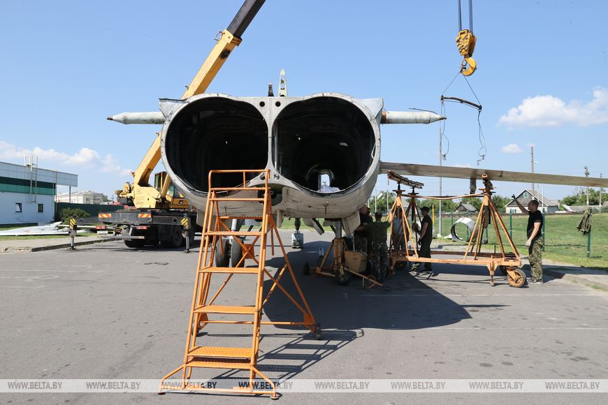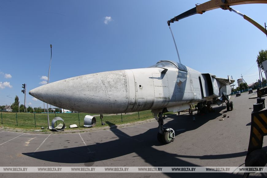 17 августа, Гомель /Корр. БЕЛТА/. В Житковичах начали сборку и монтаж макета самолета СУ-24 М. Во второй половине XX века Су-24 М находился на вооружении многих стран мира, а в некоторых из них продолжает служить до сих пор (в Вооруженных Силах Беларуси машина снята с вооружения с 2012 года).