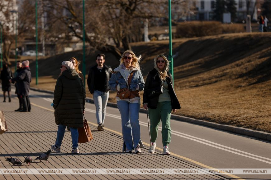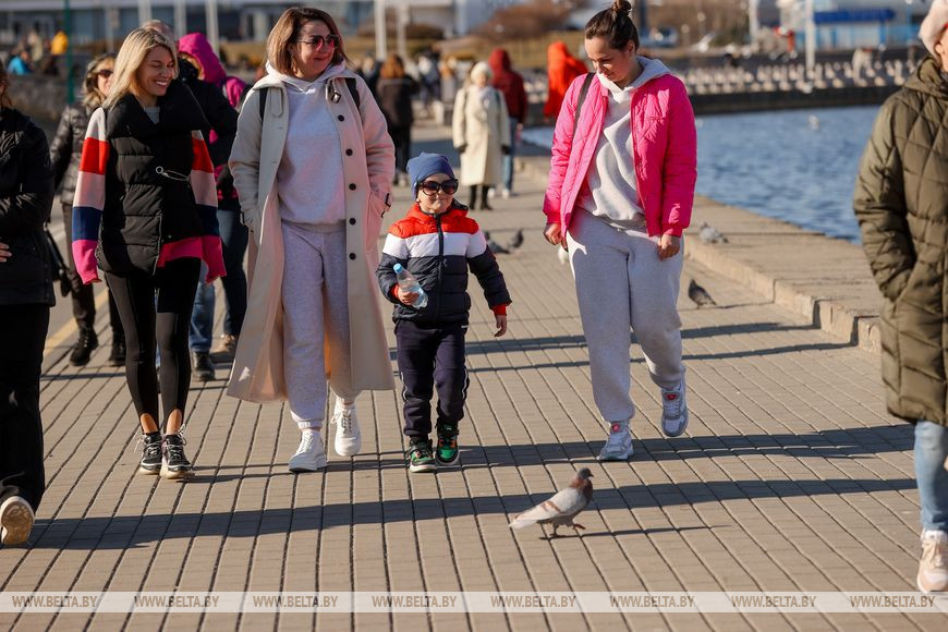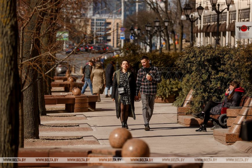 19 марта, Минск /Корр. БЕЛТА/. Солнечный и теплый весенний вечер в Минске стал для горожан прекрасным поводом выйти на улицу. В городе многолюдно: люди неспешно проводят выходной в парках, кафе, гуляют семьями.-0-