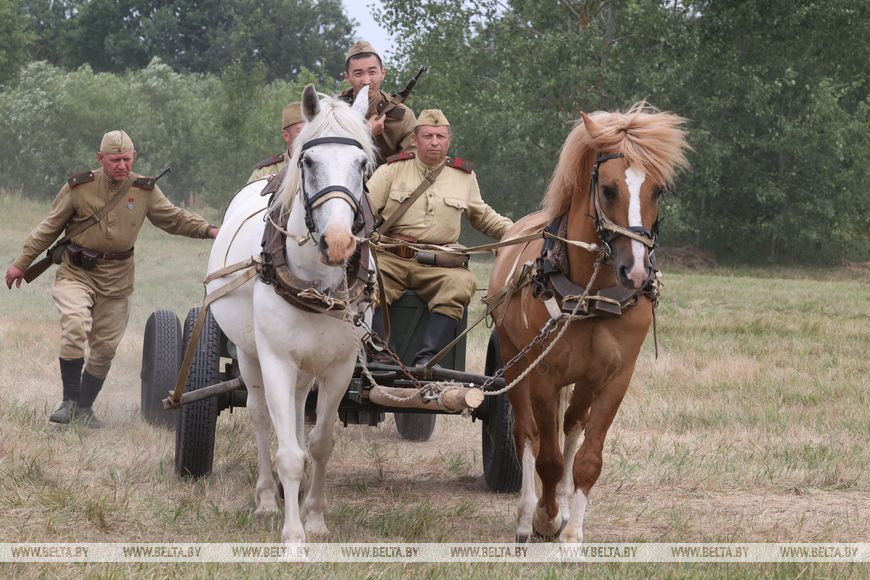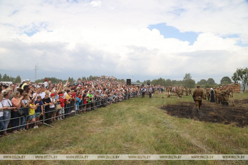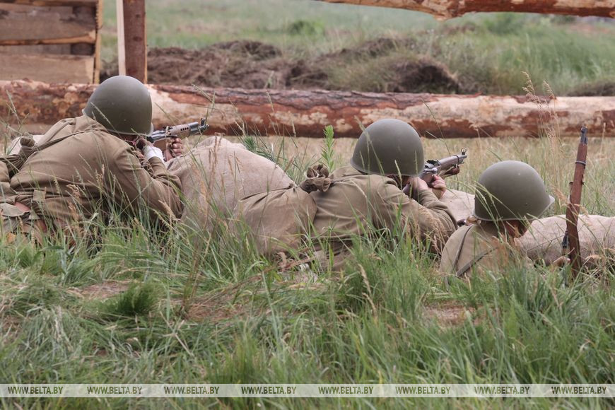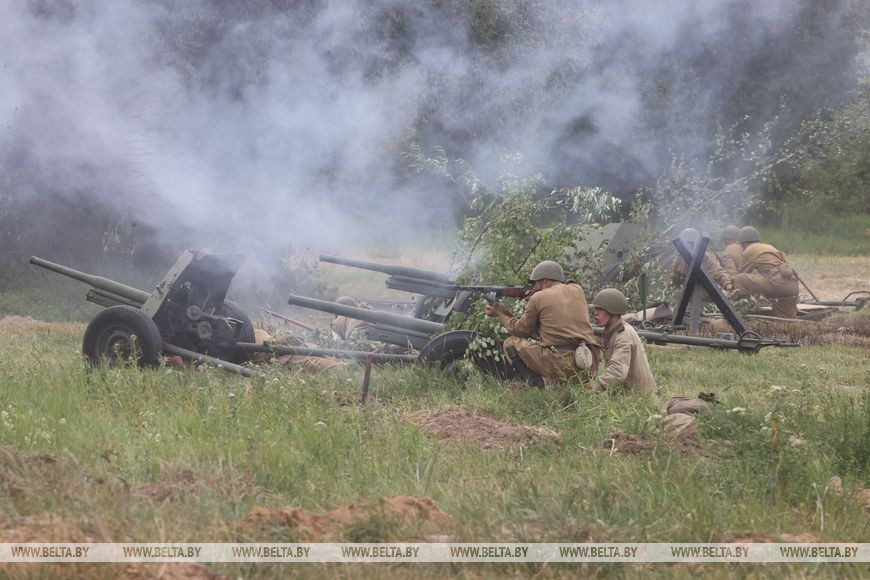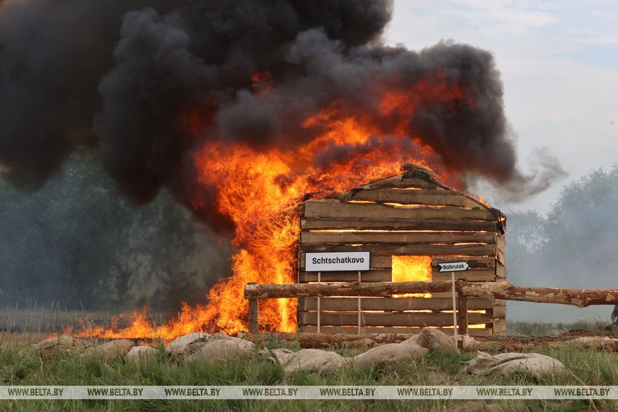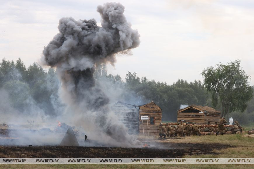25 июня, Бобруйск /Корр. БЕЛТА/. Военно-историческая реконструкция прошла сегодня недалеко от д.Щатково в Бобруйском районе. В мероприятии приняли участие около 400 реконструкторов, использовалось несколько десятков образцов военной техники, в том числе три танка Т-34. Зрителям напомнили об окружении гитлеровцев - Бобруйском котле.