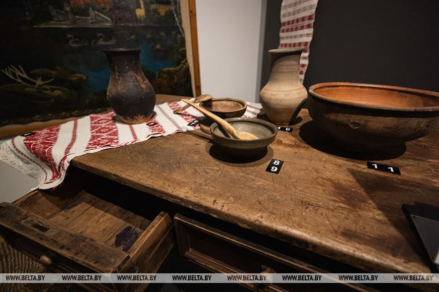 Находки этнографических экспедиций Института искусствоведения, этнографии и фольклора Академии наук 1990-х годов из регионов, пострадавших от аварии, демонстрируют быт и культуру не существующих ныне деревень. "Третий блок - наиболее яркий, который дополняет и связывает всю выставку. Это так называемая мягкая и твердая этнография. Виктор Шматов помимо того, что был художником, работал в Академии наук. В 1990-х годах он организовал экспедиции в отселенные деревни. Это большой регион, где культура могла бы быть забыта. Однако исследователь собрал и привез для изучения многие предметы, которые были оставлены людьми", - рассказала куратор.