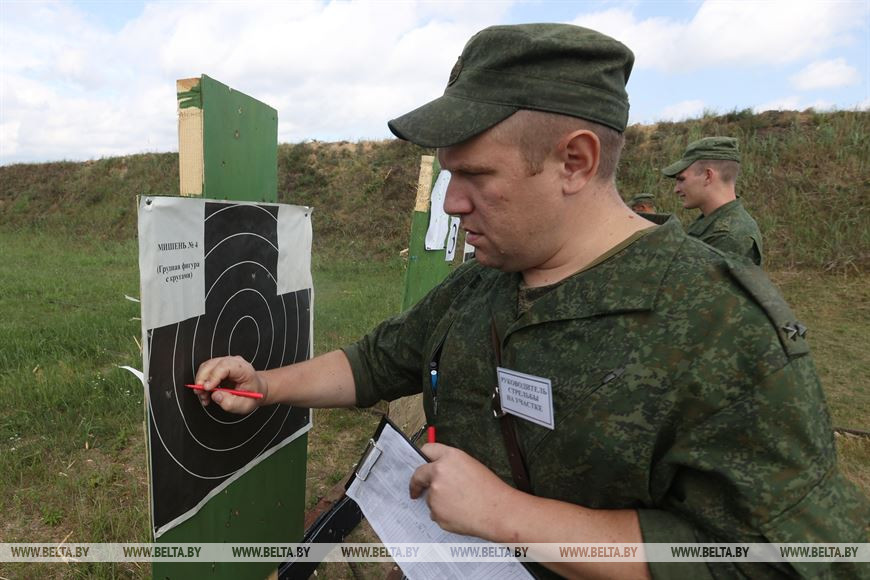 3 августа, Борисов /Корр. БЕЛТА/. Занятия по огневой подготовке проходят на 227-м общевойсковом полигоне в Борисове. Со старшинами, сержантами, прапорщиками и офицерами 72-го гвардейского объединенного учебного центра подготовки прапорщиков и младших специалистов проводятся контрольные занятия по метанию гранаты, стрельбе из пистолета Макарова и автомата Калашникова.-0-