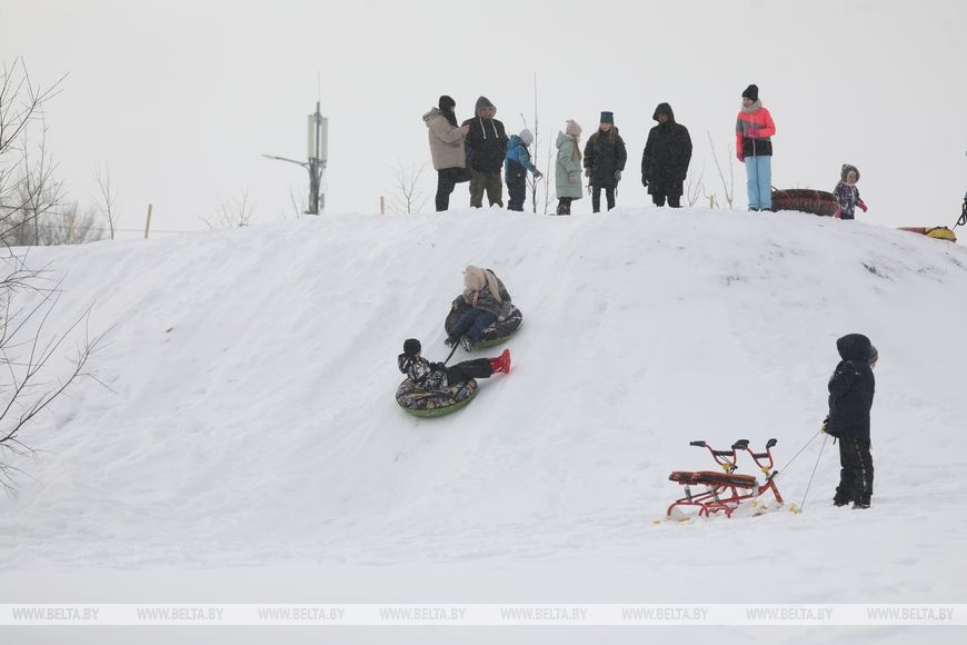 3 декабря, Минск /Корр. БЕЛТА/. Сегодня Минск преобразился в волшебное заснеженное царство. Белоснежный покров придает городу уют и тепло. Дети и взрослые с радостью катаются на горках, смеясь и создавая неповторимый зимний настрой. Люди наслаждаются скоростью спуска, ощущая легкий холодный ветер.-0-
