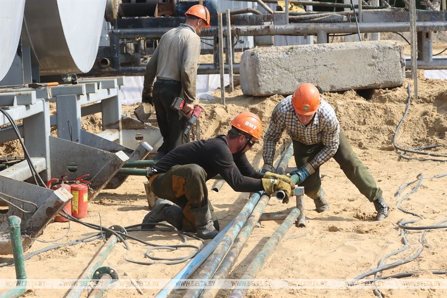 12 августа, Светлогорск /Корр. БЕЛТА/. Специалисты Вышкомонтажного управления ПО "Белоруснефть" завершают монтаж буровой установки на новой нефтяной скважине №226 Южно-Осташковичского нефтяного месторождения. Работы будут завершены 14 августа, и специалисты Светлогорского управления буровых работ начнут осваивать новую скважину. Всего за 7 месяцев нынешнего года Вышкомонтажным управлением была передана 31 буровая установка на территории Республики Беларусь для Светлогорского управления буровых работ и одна буровая установка в Западной Сибири для ООО "Белоруснефть-Сибирь". -0-