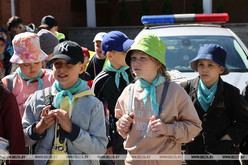 В витебской гимназии №7 сотрудники ГАИ как раз встретились с ребятами, которые отправлялись в сопровождении педагогов на экскурсию на одно из предприятий города. Лидер колонны и замыкающий одеты в яркие жилетки со вставками из светоотражающих материалов, ребята проинструктированы о том, как нужно передвигаться по городу. На вопросы милиционеров мальчики и девочки отвечают с ходу - кто на "зебре" главный, что делать, если замигал зеленый сигнал светофора, где следует ездить на велосипеде. Затруднения вызвала только просьба назвать средства персональной мобильности (СПМ), но с маленькой подсказкой ребята справились и перечислили все виды транспорта, которые подпадают под это определение. Заодно сотрудник ГАИ напомнила, что предельная скорость, с которой СПМ могут передвигаться по обозначенным дорожкам на тротуарах и дорогах, составляет не более 25 км/ч, несмотря на то, что те же электросамокаты могут разгоняться и до 50 км/ч. На память о встрече ребята из школьного лагеря сделали фото в машине ГАИ, посидели за рулем и примерили милицейский головной убор - возможно, кто-то из юных витебчан захочет однажды сделать его своим профессиональным атрибутом.