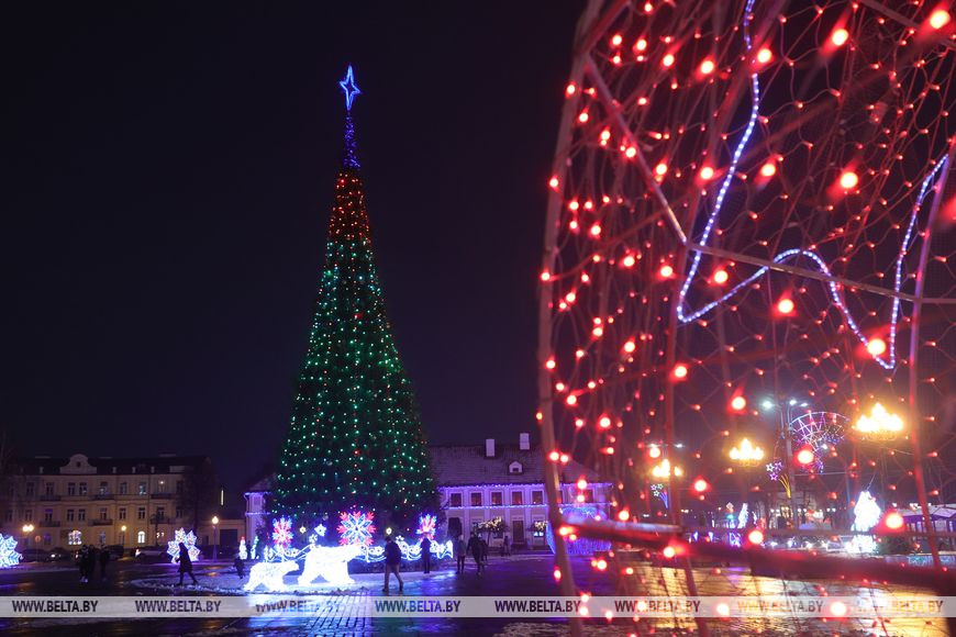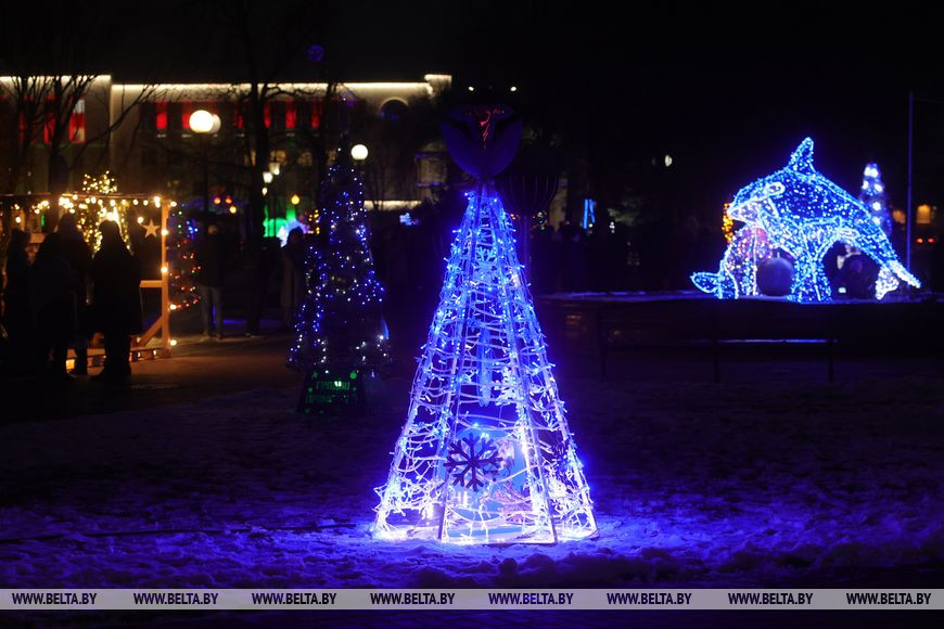 9 декабря, Гродно /Корр. БЕЛТА/. В Гродно зажгли огни на аллее дизайнерских новогодних елок, передает корреспондент БЕЛТА.