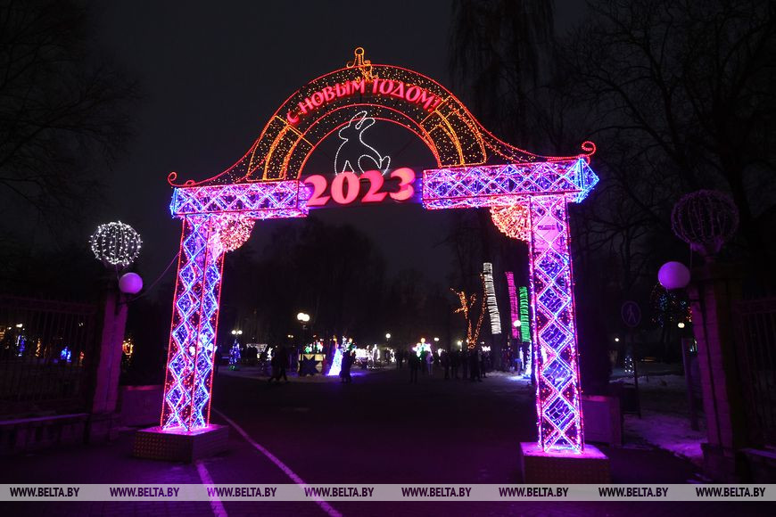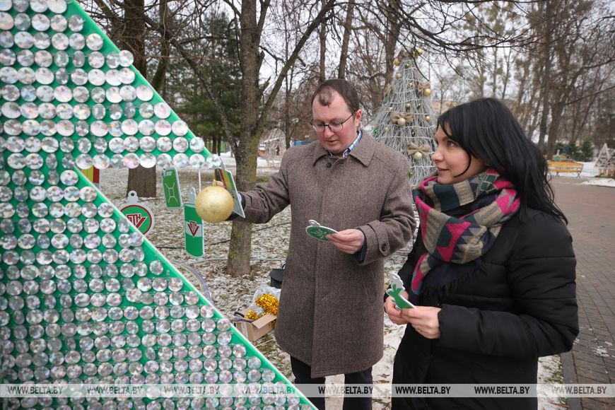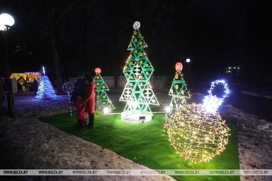 В Гродно начались предновогодние мероприятия. Первыми праздничные огни зажгли по традиции в парке Жилибера, где в который раз разместилась аллея дизайнерских елок, созданных предприятиями и организациями города.
