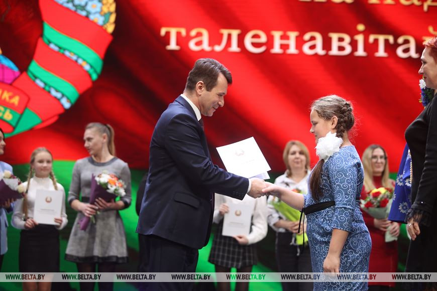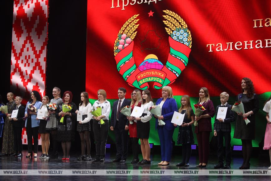 Сегодня награды были вручены и стипендиатам специального фонда Президента по поддержке талантливой молодежи - представителям Гродненской области. На сцену ученики школ искусств региона поднимались вместе с учителями и родителями.
