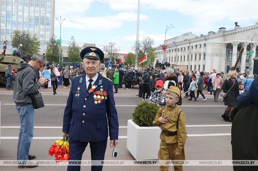 "В День Великой Победы перед светом Вечного огня, который горит в память о подвиге белорусского народа, хочу заверить: наше поколение сможет достойно продолжить дело дедов и прадедов, будет учиться, трудиться и добиваться самых высоких целей во имя процветания нашего города, нашей страны. Мы сможем защитить интересы нашего государства", - заверил учащийся городского лицея.-0-