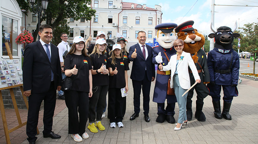 На локации ГАИ министра встречали юные жители Витебска в форме стражей дорог. Ребята вручили Ивану Владимировичу модель автомобиля из глины. Подарок вызвал искреннюю улыбку у главы ведомства, который стал участником акции "За безопасность - вместе". На его флаере появилась наклейка за совместное фото.