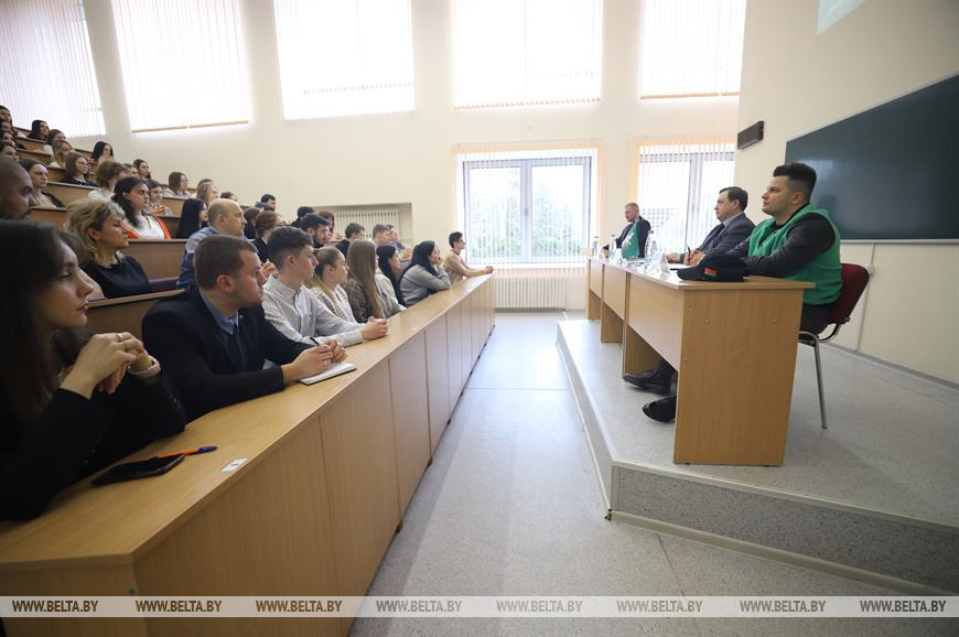 Пинск стал первым городом после Минска, куда пришел "Зачетный разговор". Одна из таких встреч организована в стенах Полесского государственного университета. "Обсудим с молодыми людьми животрепещущие темы, которые интересуют их не только в масштабе развития страны, но и локальные аспекты. Возможно, они связаны с возможностями обучения, темами государственной молодежной политики. Поговорим о внешней и внутренней обстановке", - сказал Александр Лукьянов.
