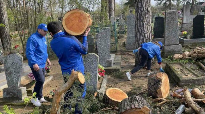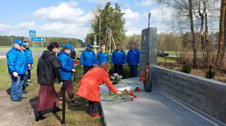Молодежный трудовой десант высадился у обелиска в деревне Минойты. Установлен он на братской могиле расстрелянных здесь в июле 1941 года пациентов и медицинского персонала психиатрической больницы. Среди погибших и известный врач Рубинович. Волонтеры также трудились у братской могилы жертв войны в деревне Гуды, где захоронен военфельдшер Серафим Сазонов. Молодые медики благоустроили прилегающую к захоронениям территорию, высадили туи, самшит и цветы, уложили плитку.