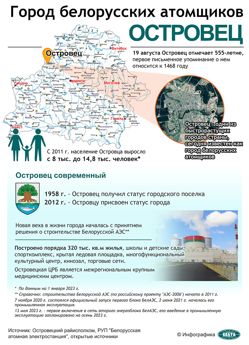 История современного развития Островца тесно связана со строительством БелАЭС. Когда-то это был поселок городского типа, в котором проживали чуть более 8 тыс. человек. Сегодня это современный город с развитой инфраструктурой, численность населения которого превышает 14 тыс.