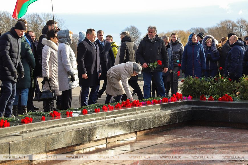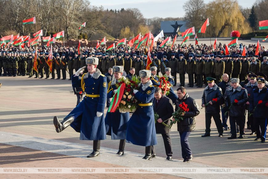 В мероприятии приняли участие военнослужащие Брестского гарнизона, руководители области и города, дипломаты, представители общественных организаций, местные жители. Они возложили цветы и венки к Вечному огню, почтили минутой молчания память защитников Отечества. В завершение военнослужащие прошли торжественным маршем по площади Церемониалов крепости.
