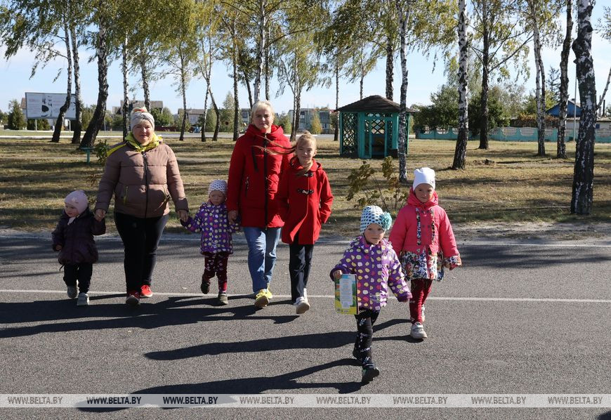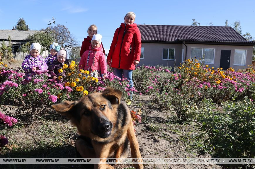 С удовольствием принимаем приглашение посмотреть будущее семейное гнездышко и отправляемся по тихим осенним наровлянским улочкам к новому адресу многодетной семьи. К дружной девчачьей компании присоединяется, радостно виляя хвостом, игривая собака. "Она-то чужая или без хозяев вовсе, но мы ее подкармливаем, вот она и возле нас все время. Девочки ей и кличку уже дали - Герда. Любят заглянуть к нам на участок и коты - наша Мария им тоже всем имена раздает. Борька, Майкл, Машка… Мы всех не упомним, а она каждого знает", - рассказывает Наталья.