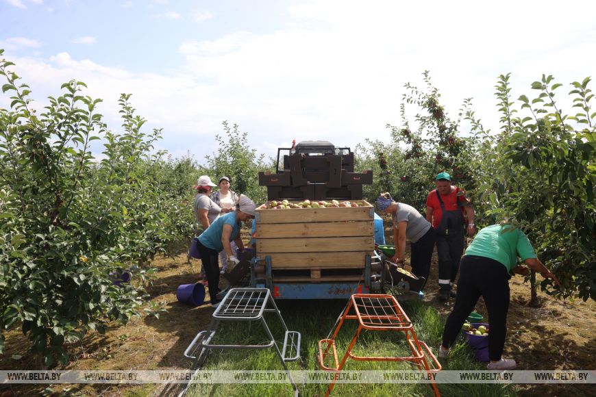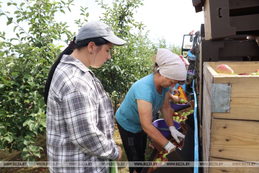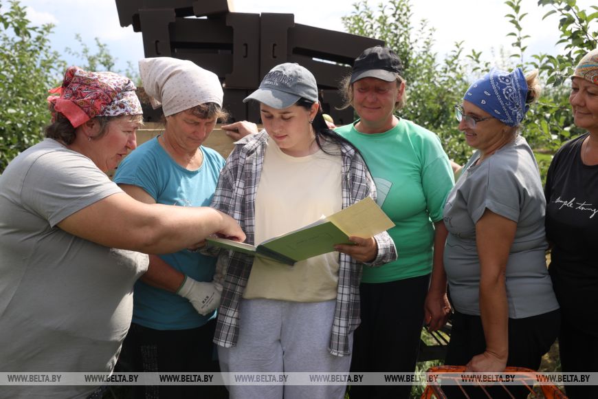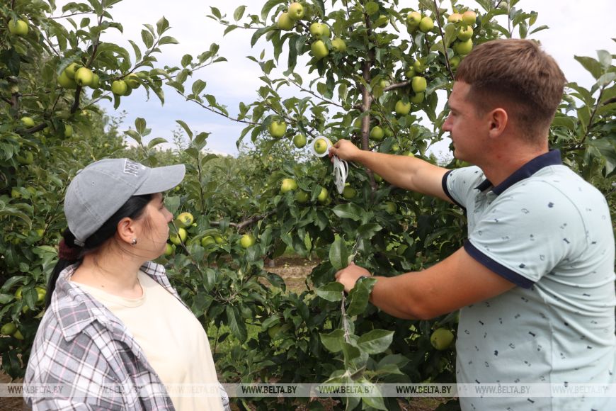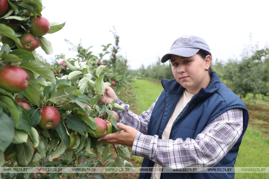Среди них Елена Назарук, агроном-садовод, которая с апреля ухаживает за плодовым садом. Ее супруг Артем тоже работает в хозяйстве, но на другом участке - он бригадир по растениеводству. Оба окончили Ляховичский аграрный колледж и, имея выбор, остановились именно на Остромечево.