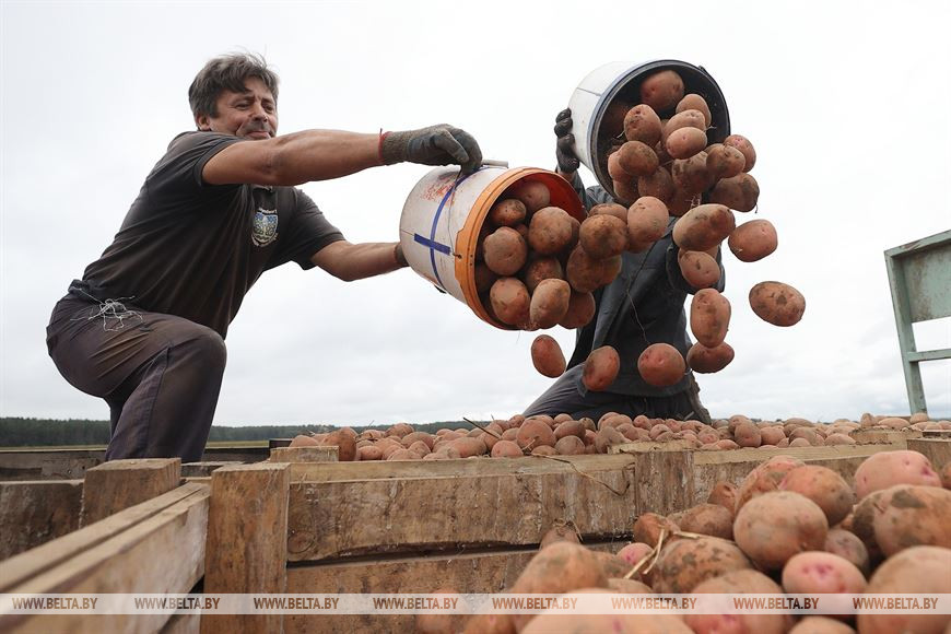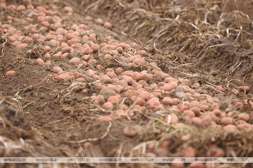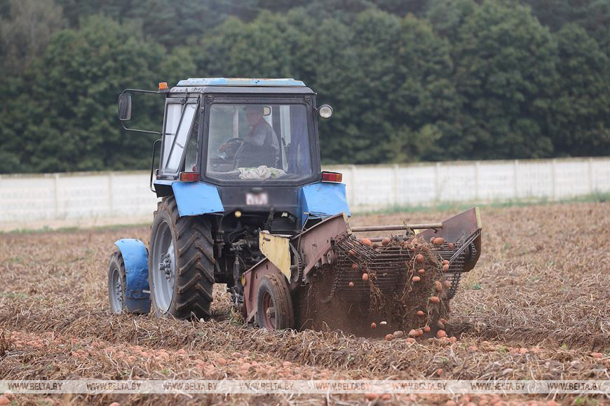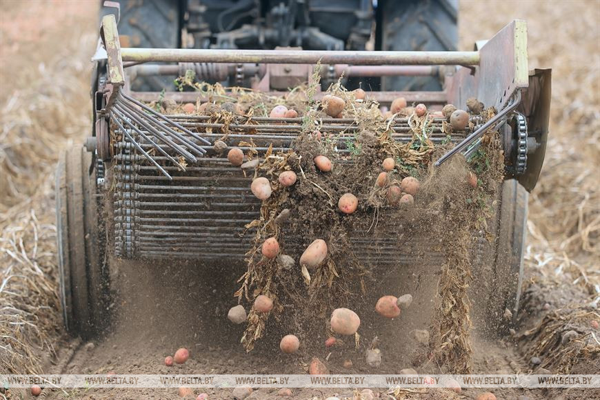 31 августа, Щучинский район /Корр. БЕЛТА/. В Щучинском районе на полях Гродненского зонального института растениеводства идет уборка картофеля, передает корреспондент БЕЛТА.