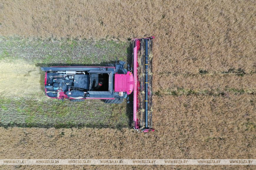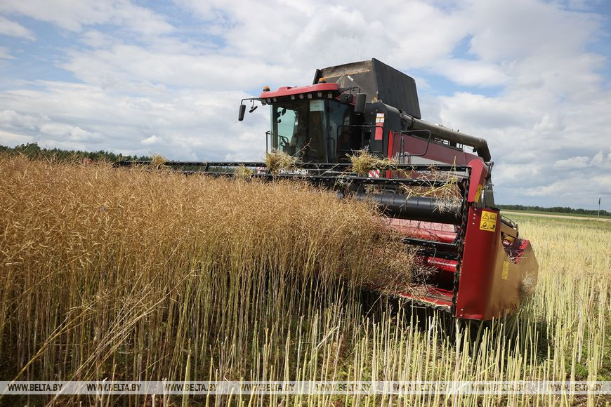 "Об уборочной 2023 года мы стали думать еще в прошлом году. Чтобы уборка шла бодро, перекроили структуру посевных площадей: увеличили существенно площади под озимый ячмень (посеяли 400 га), немного творчески подошли к формированию структуры рапсового клина (выстроили систему из гибридов разного срока созревания, чтобы работать ритмично и без потерь). В результате уборочную кампанию начали 30 июня - первыми в районе", - рассказал директор КСУП "Бородичи" Денис Томкевич.